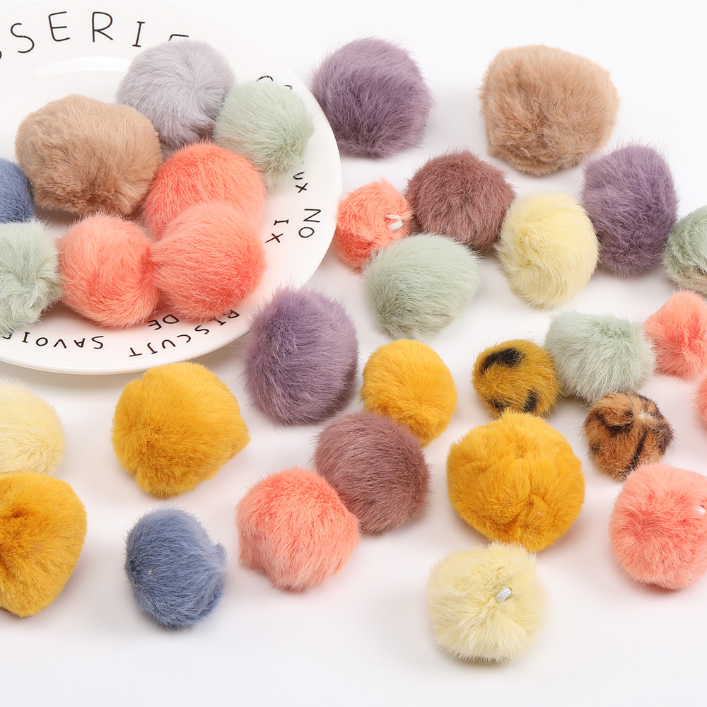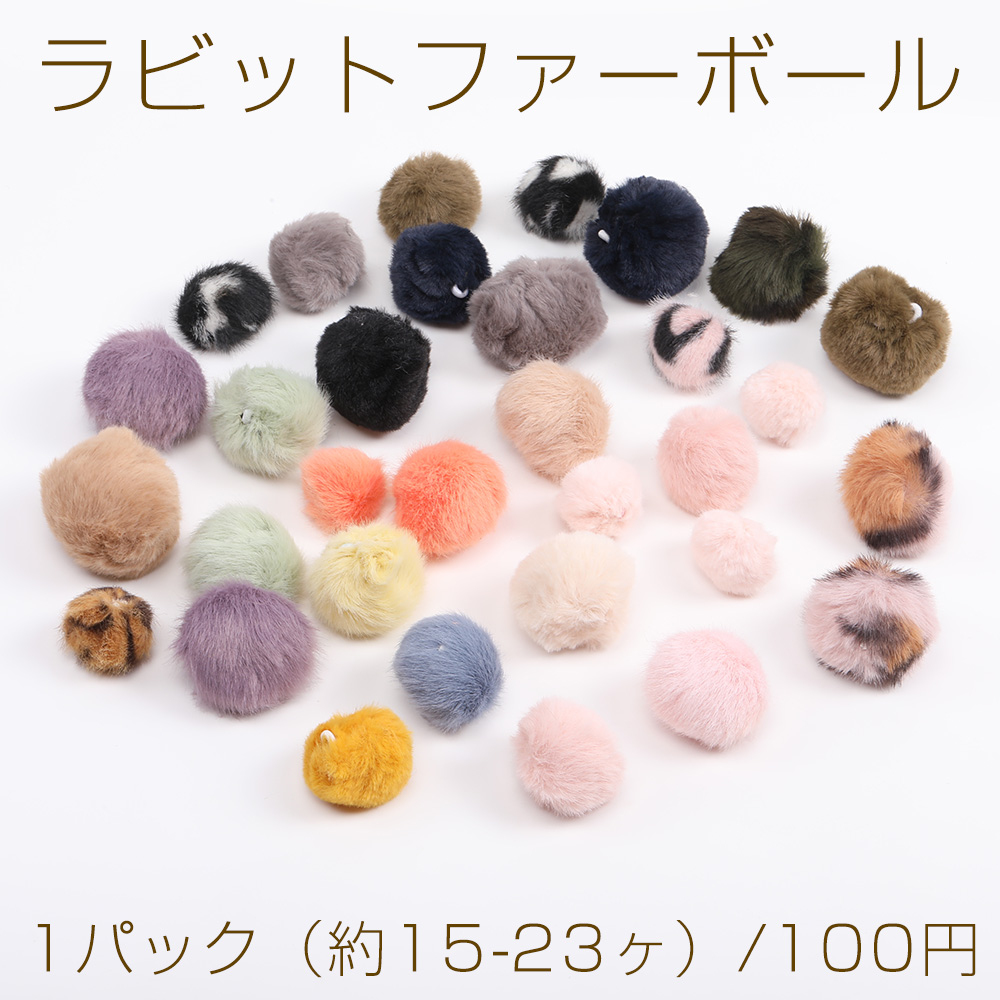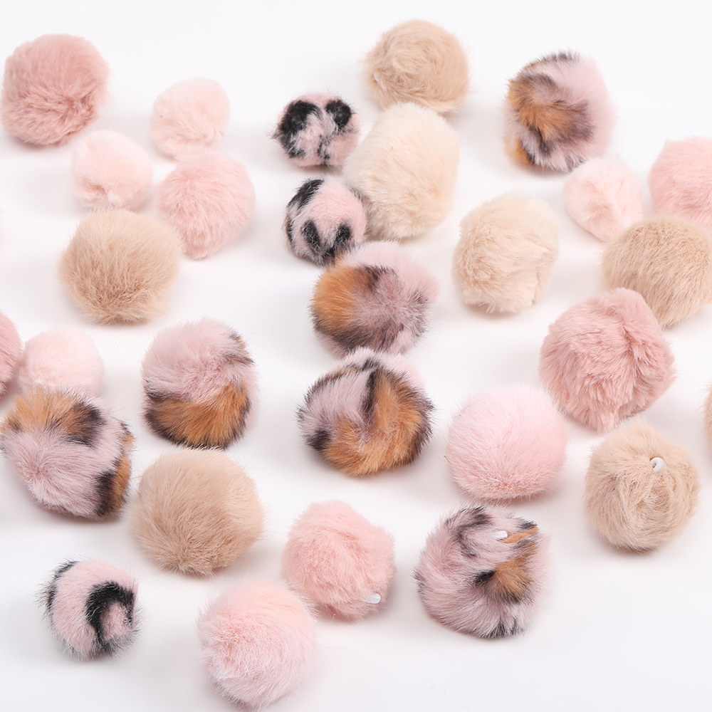 ラビットファーボール フェイクファーボール ヒョウ柄 ミックスカラー