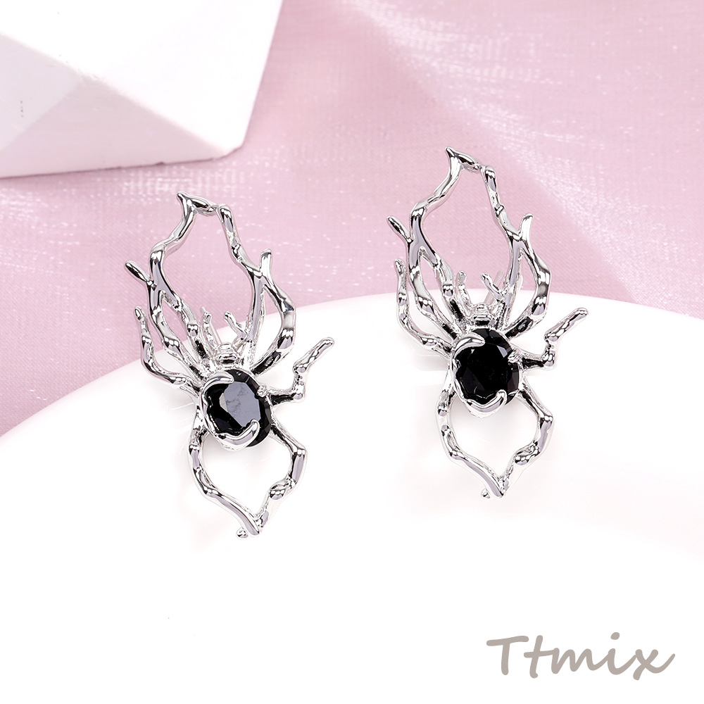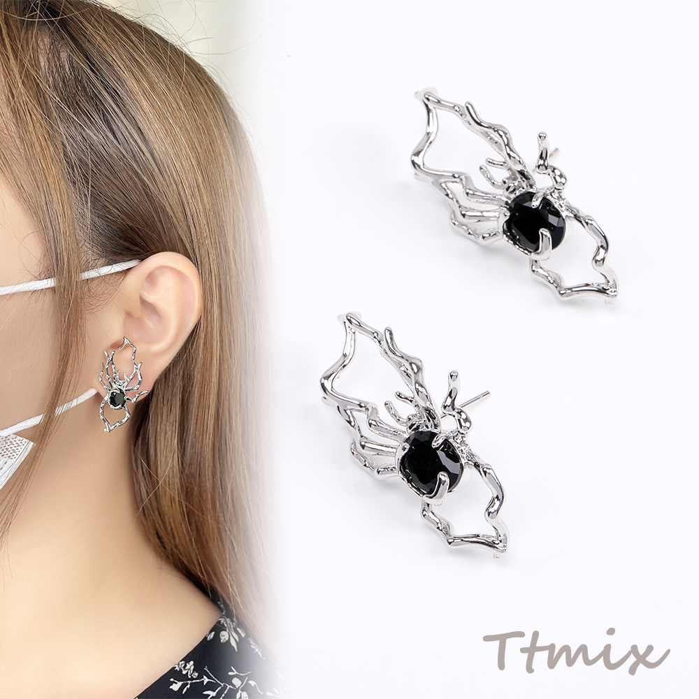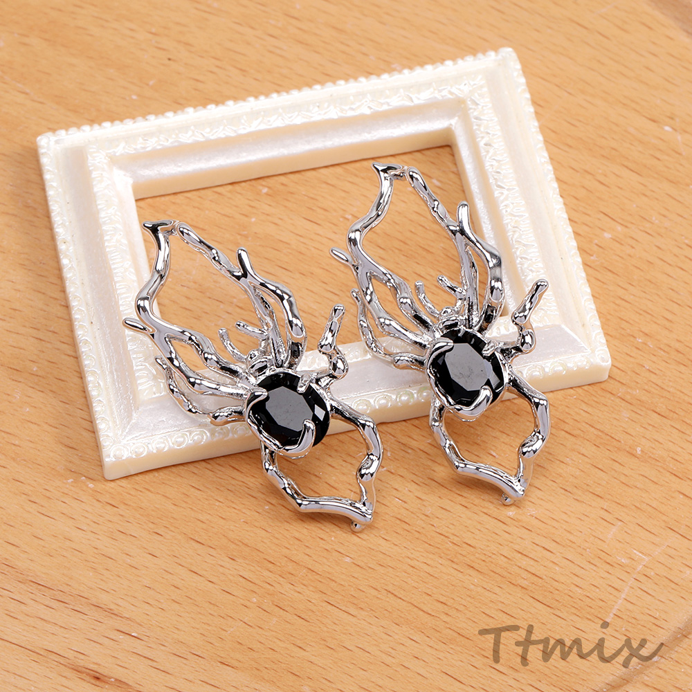 デザインピアス 蜘蛛 19×36mm ロジウム(1ペア)