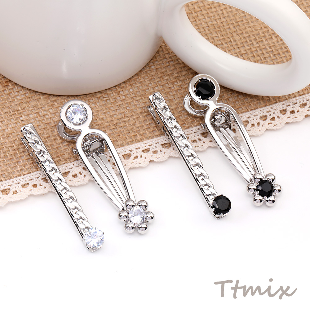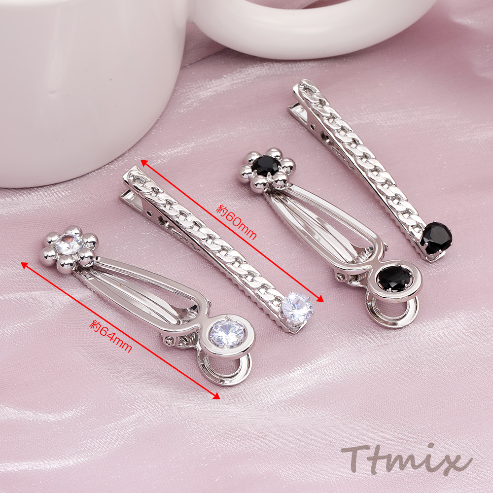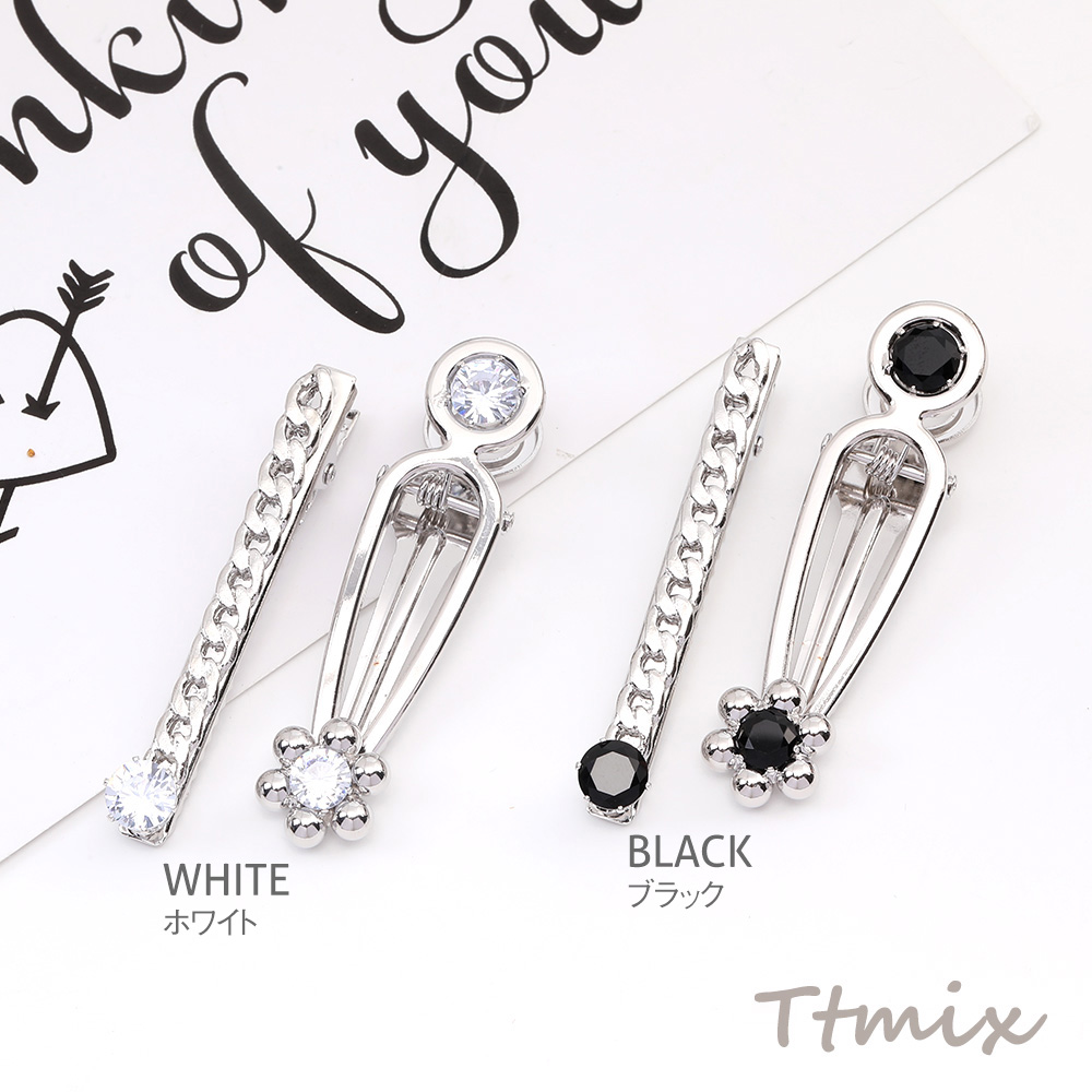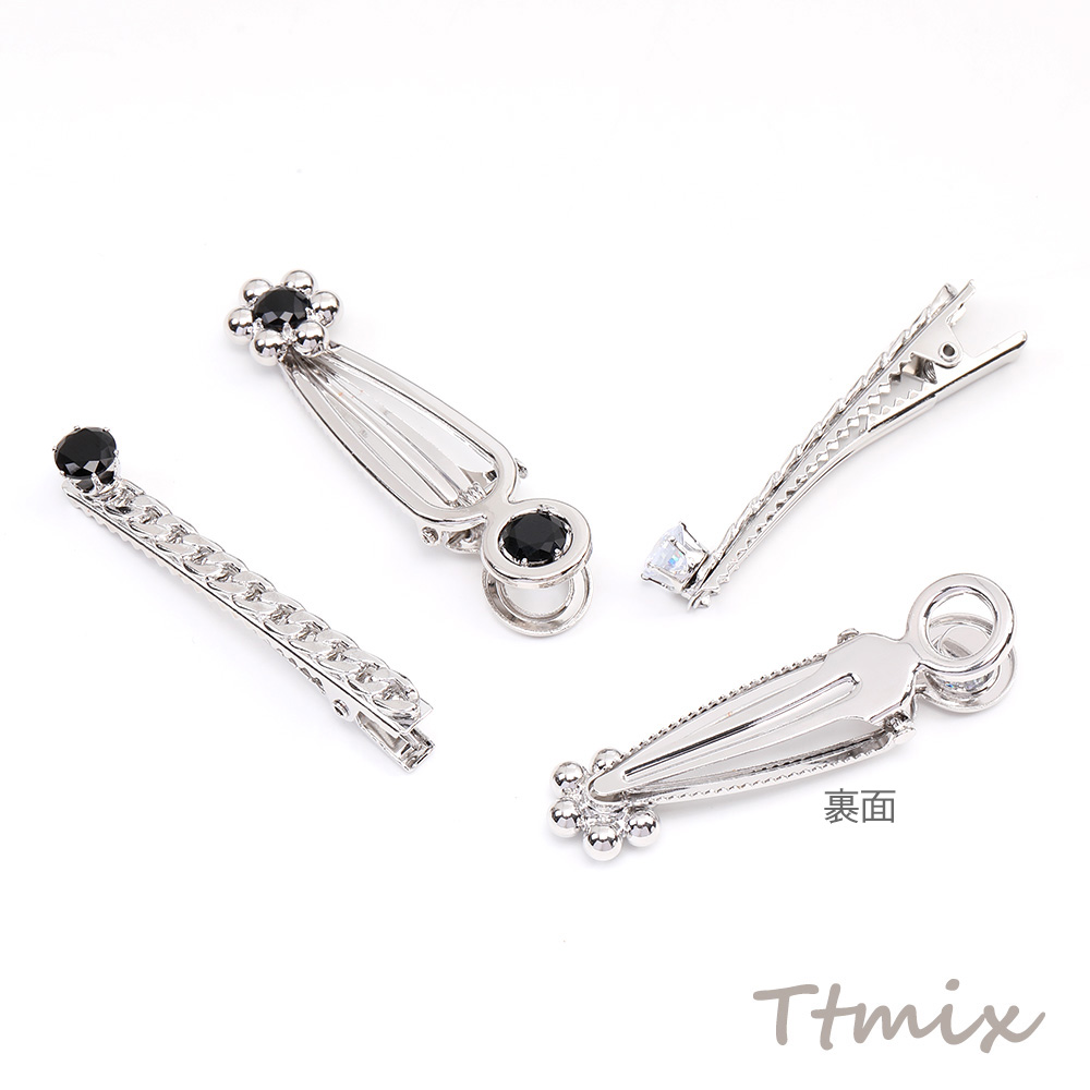 メタルヘアクリップ ジルコニア付き ロジウム(2個セット)