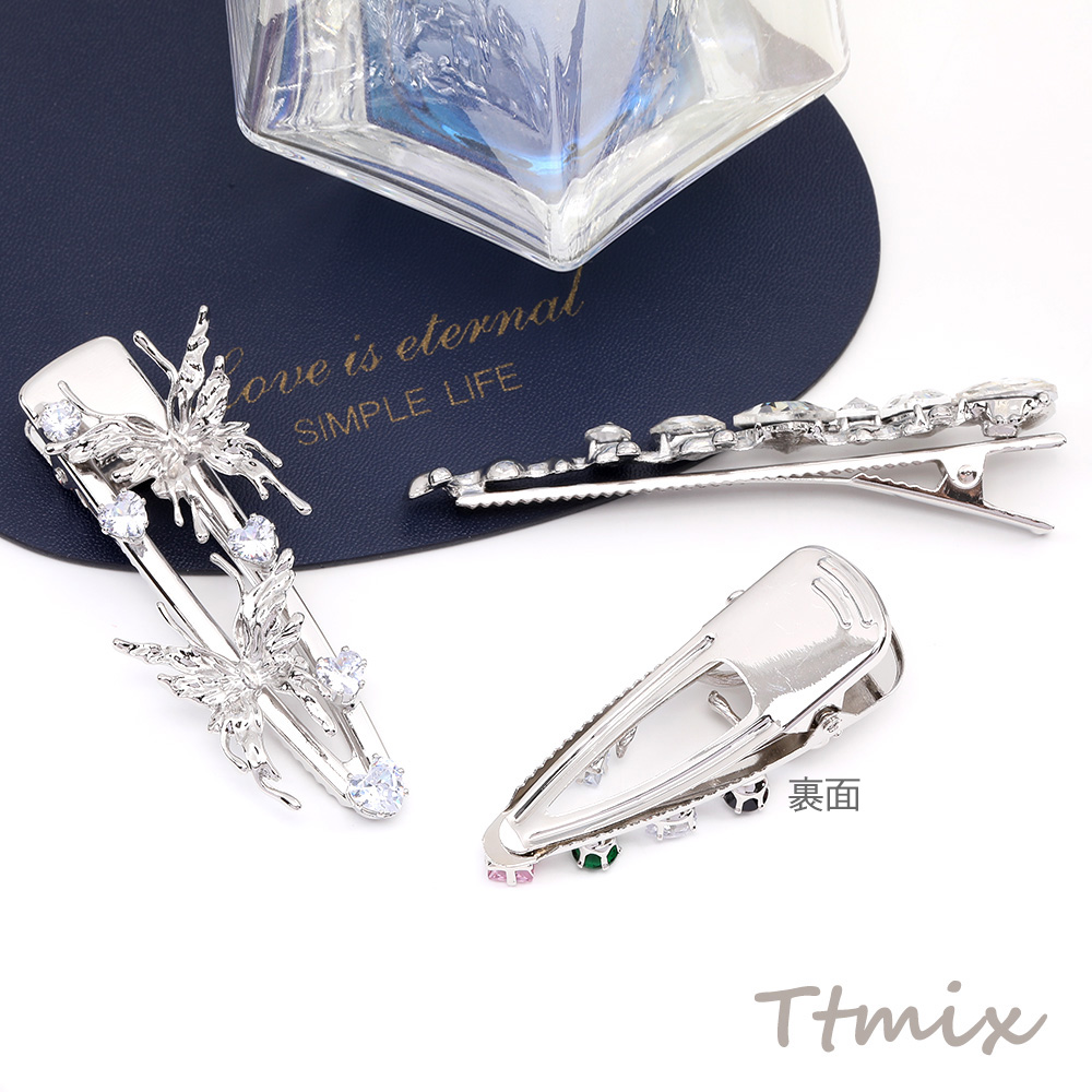 メタルヘアクリップ ジルコニア付き ロジウム