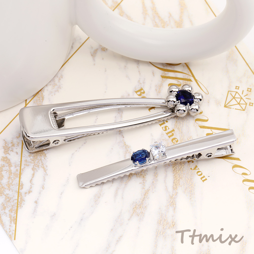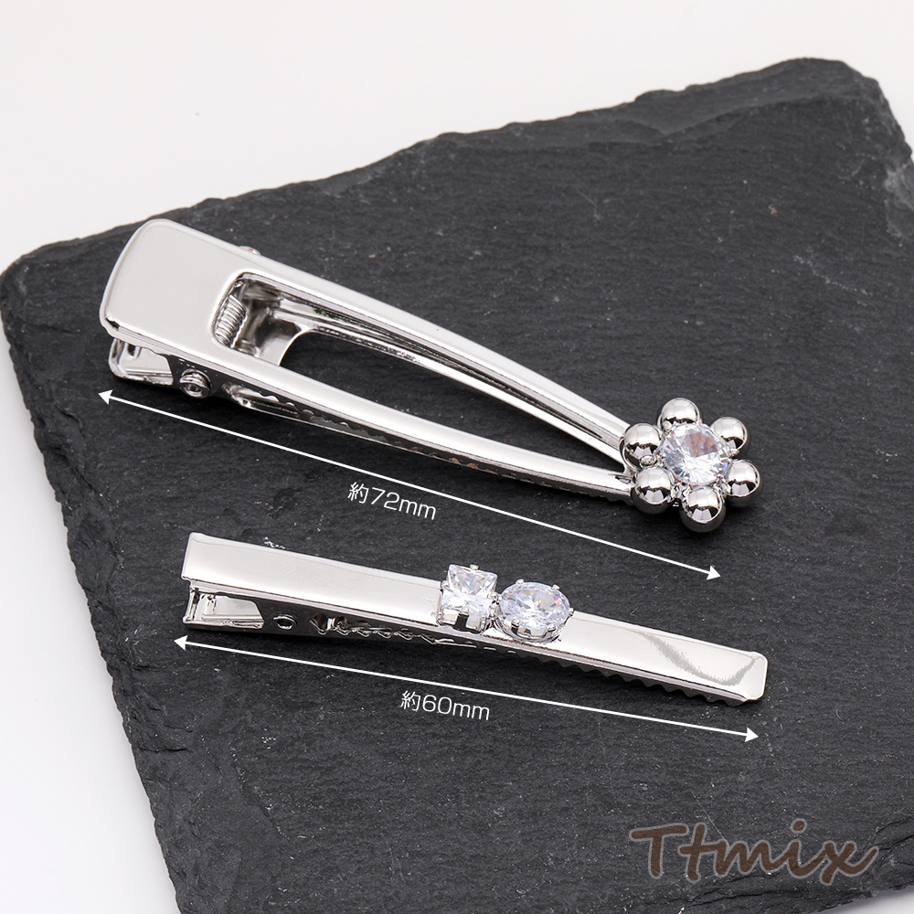 メタルヘアクリップ ジルコニア付き ロジウム(2個セット)
