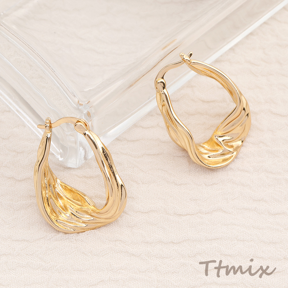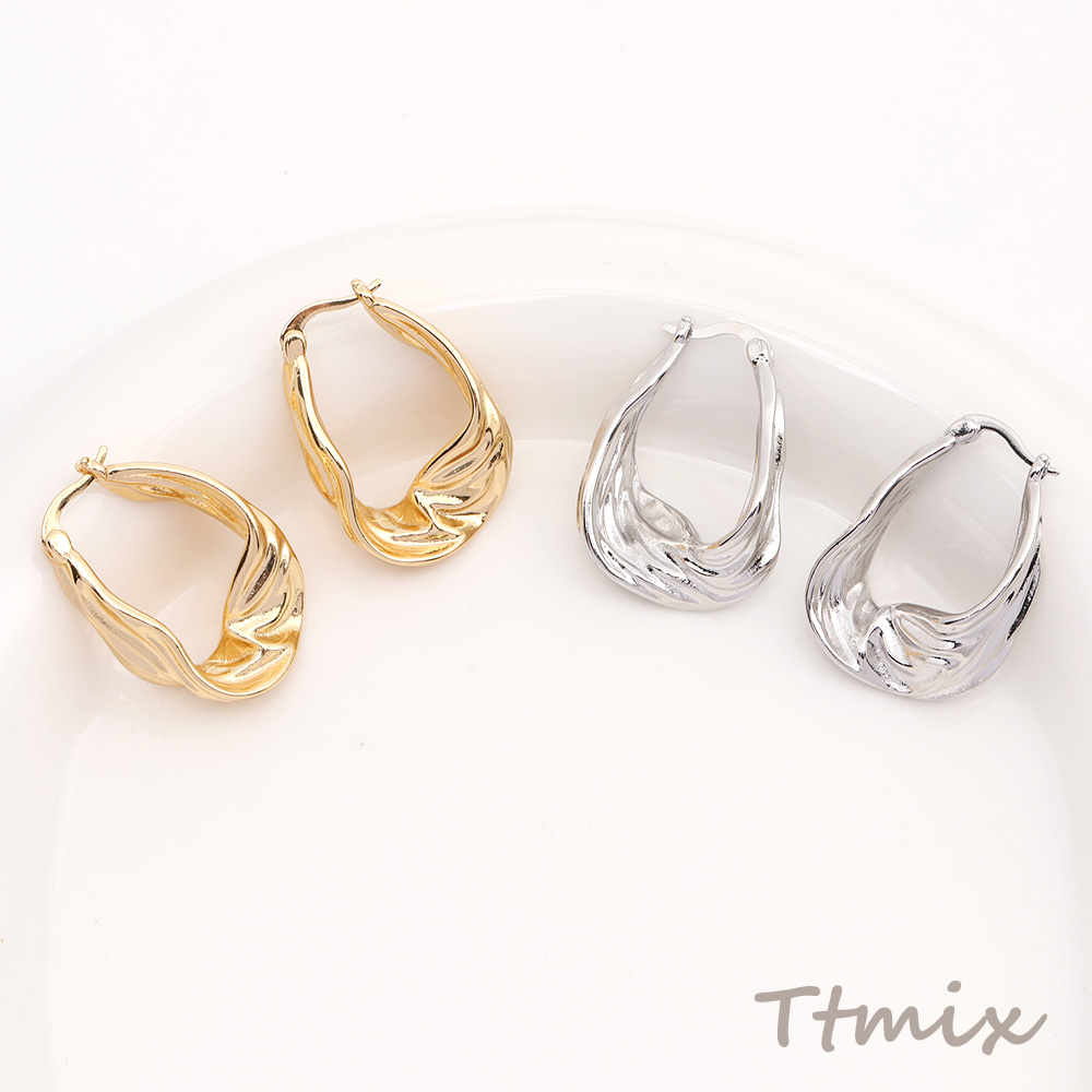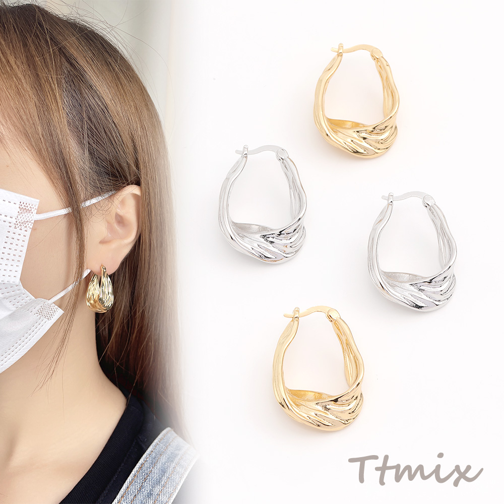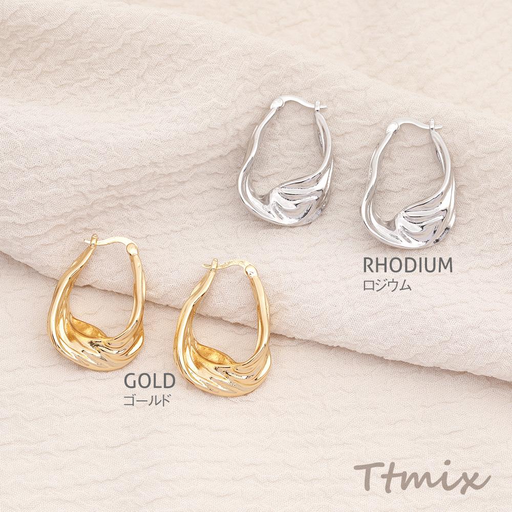 高品質デザインピアス 不規則フープのピアス 20×30mm(1ペア)