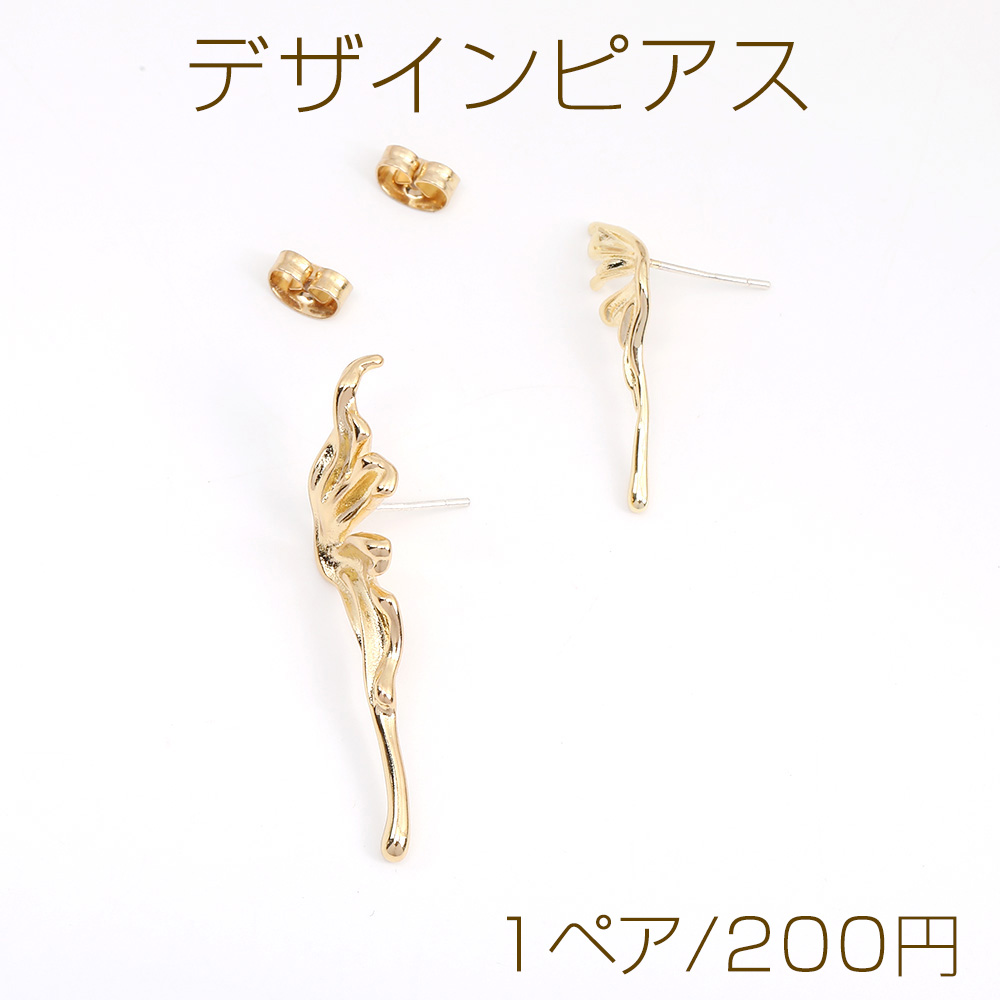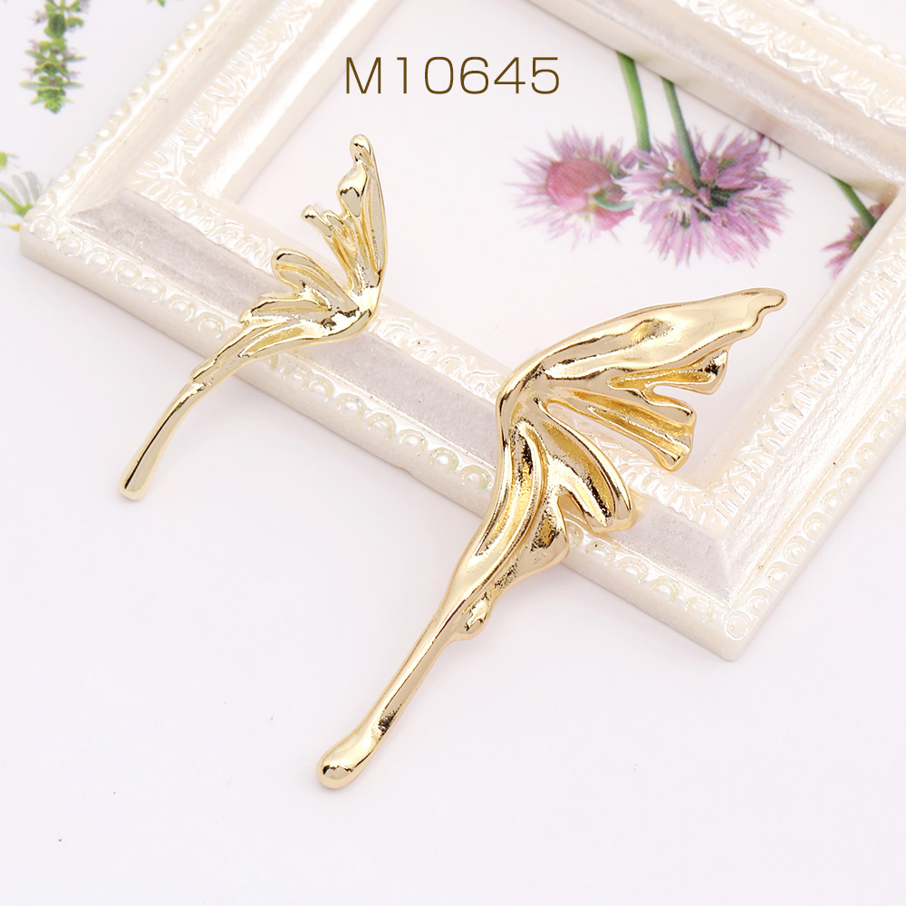 高品質デザインピアス 蝶 11×40mm ゴールド(1ペア)