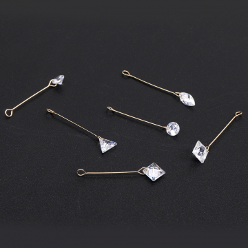 ピアノ線付きガラスチャーム ラウンド 三角形 ホースアイ スクエア型 ゴールド×クリスタル