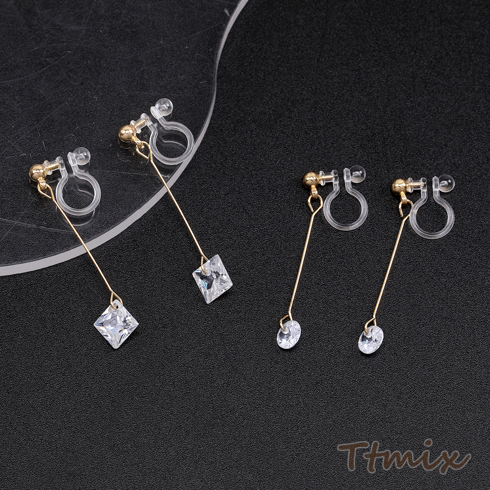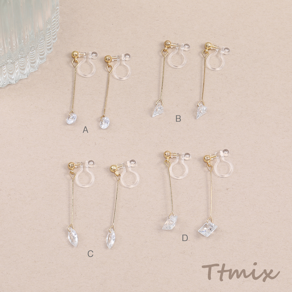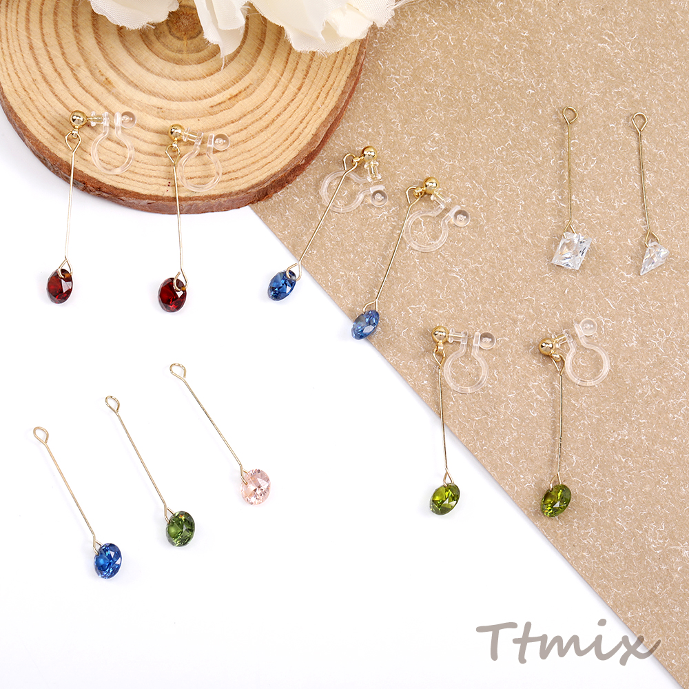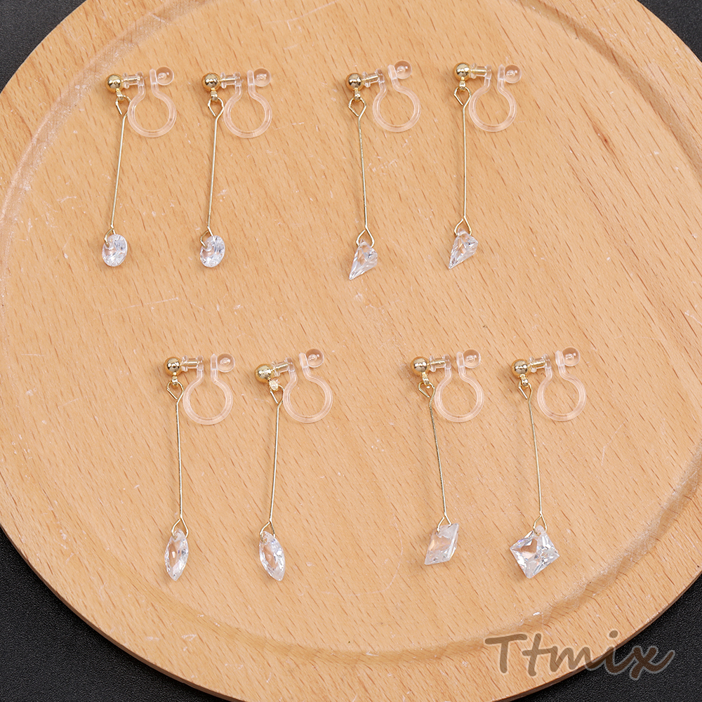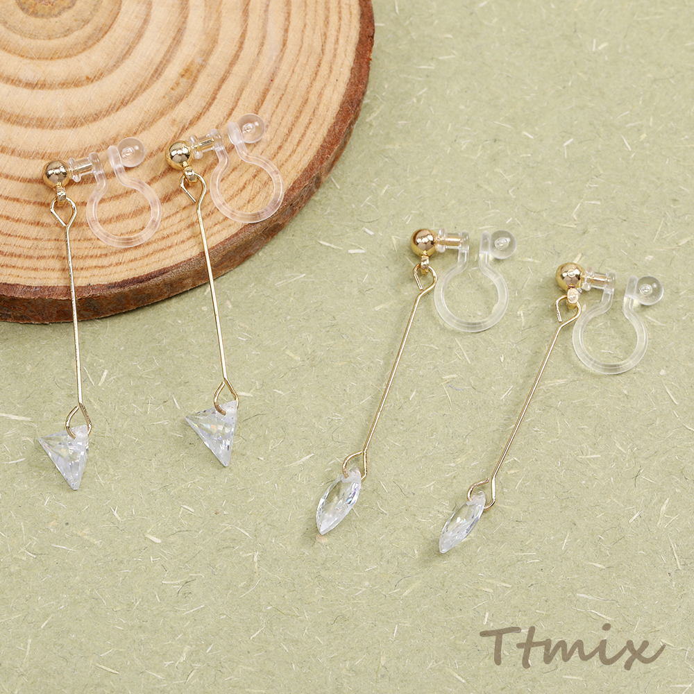 樹脂ノンホールピアス 樹脂イヤリング ストーンイヤリング ピアノ線 ラウンド 三角形 ホースアイ スクエア型 クリスタル