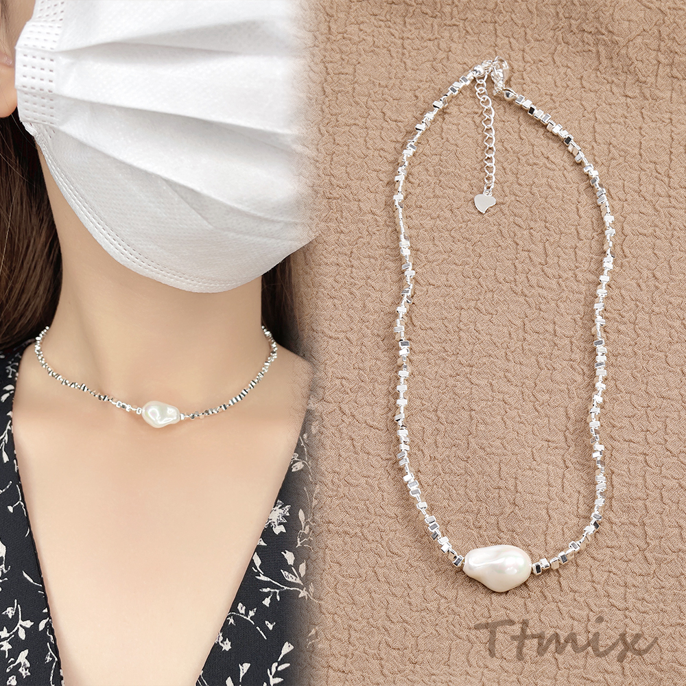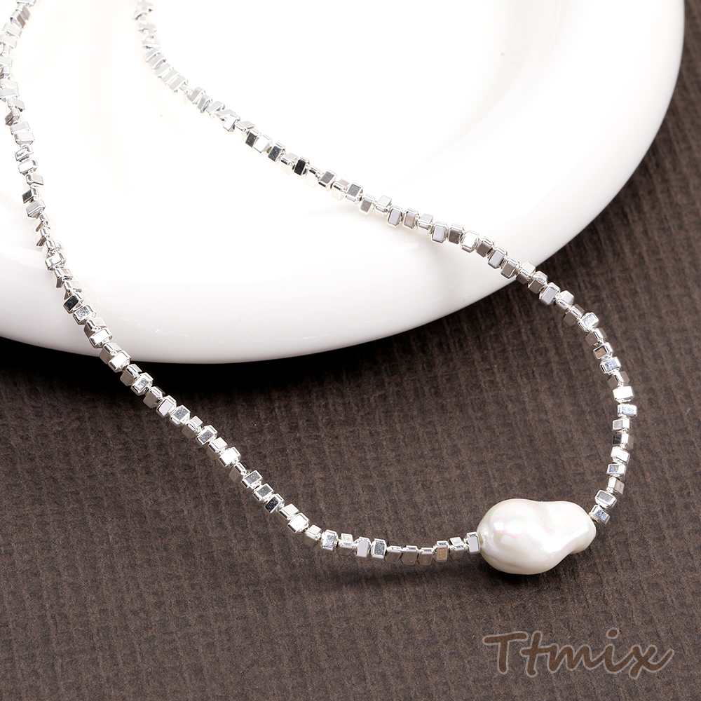 メタルビーズネックレス パール付き(1連)