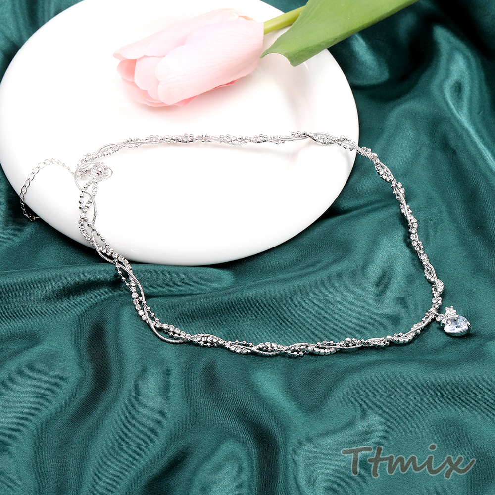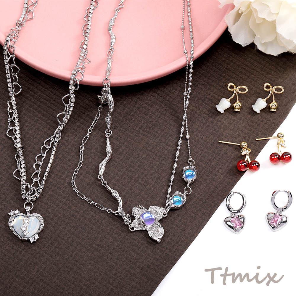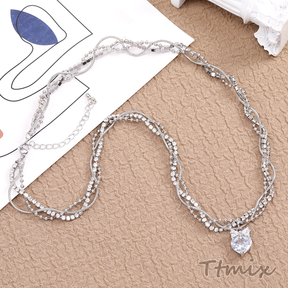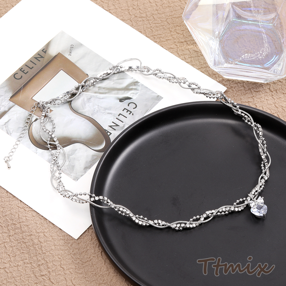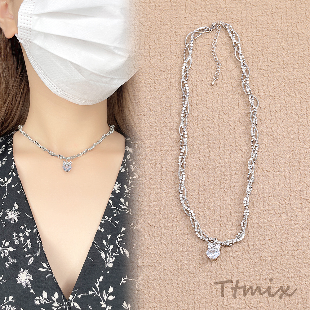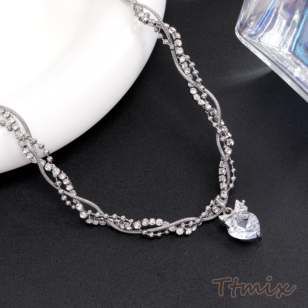 メタルチェーン&ラインストーン付きネックレス リボンとハート型(1連)