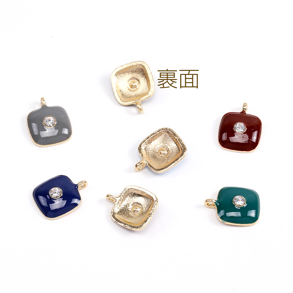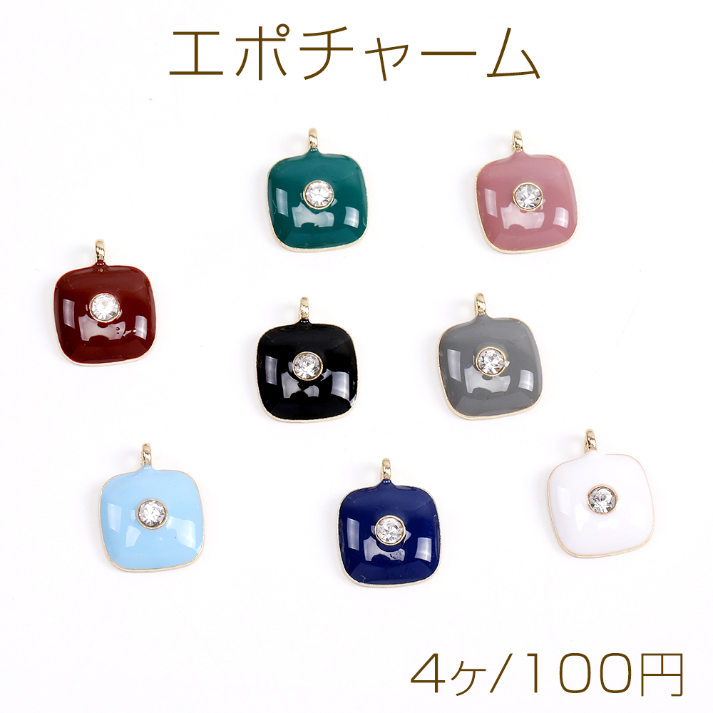 エボチャーム スクエア型 ラインストーン付き 11×14mm ゴールド(4ヶ)