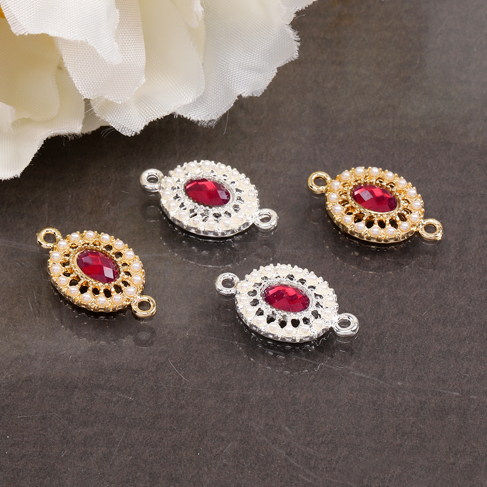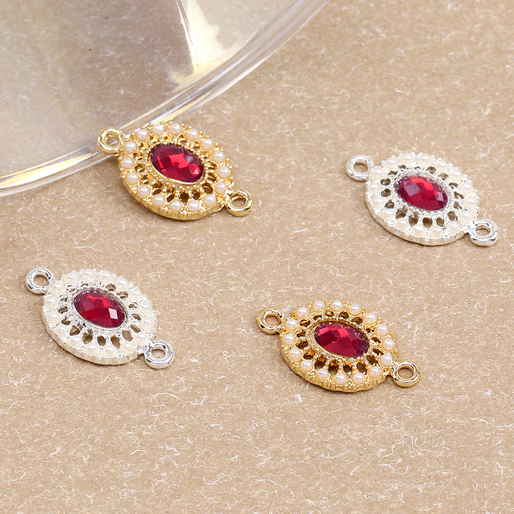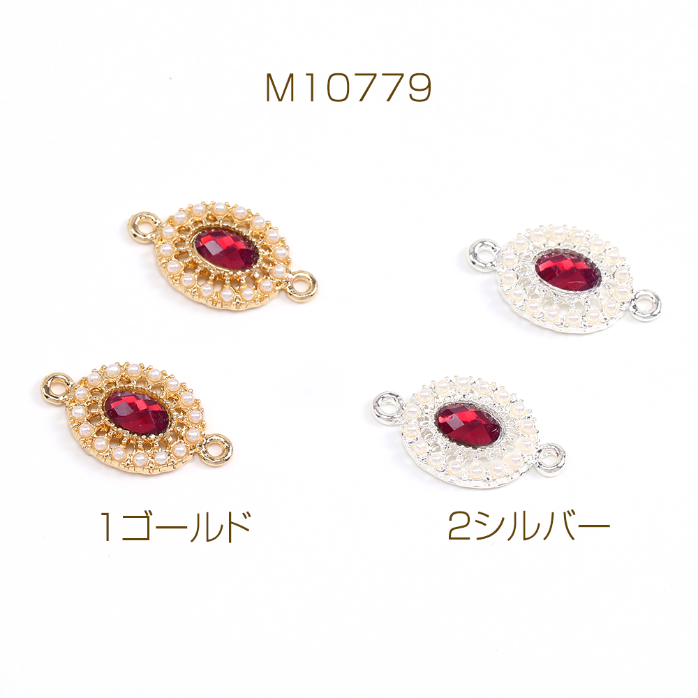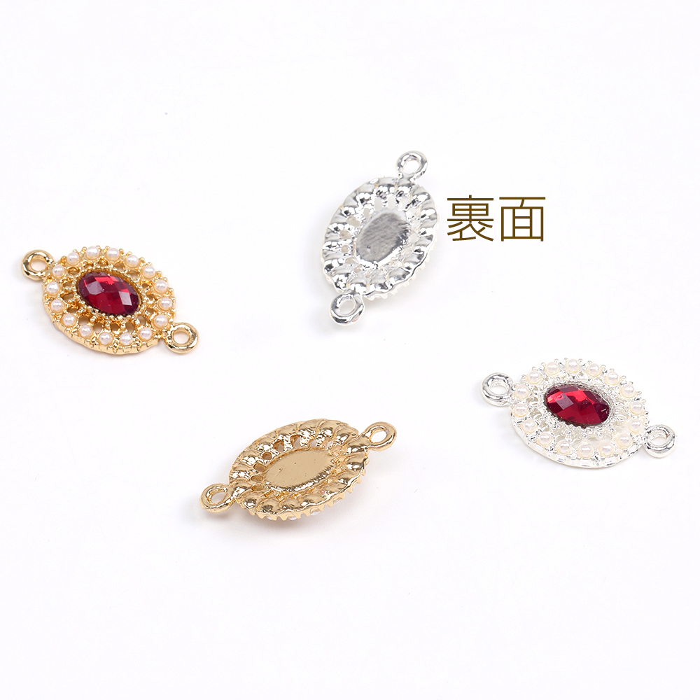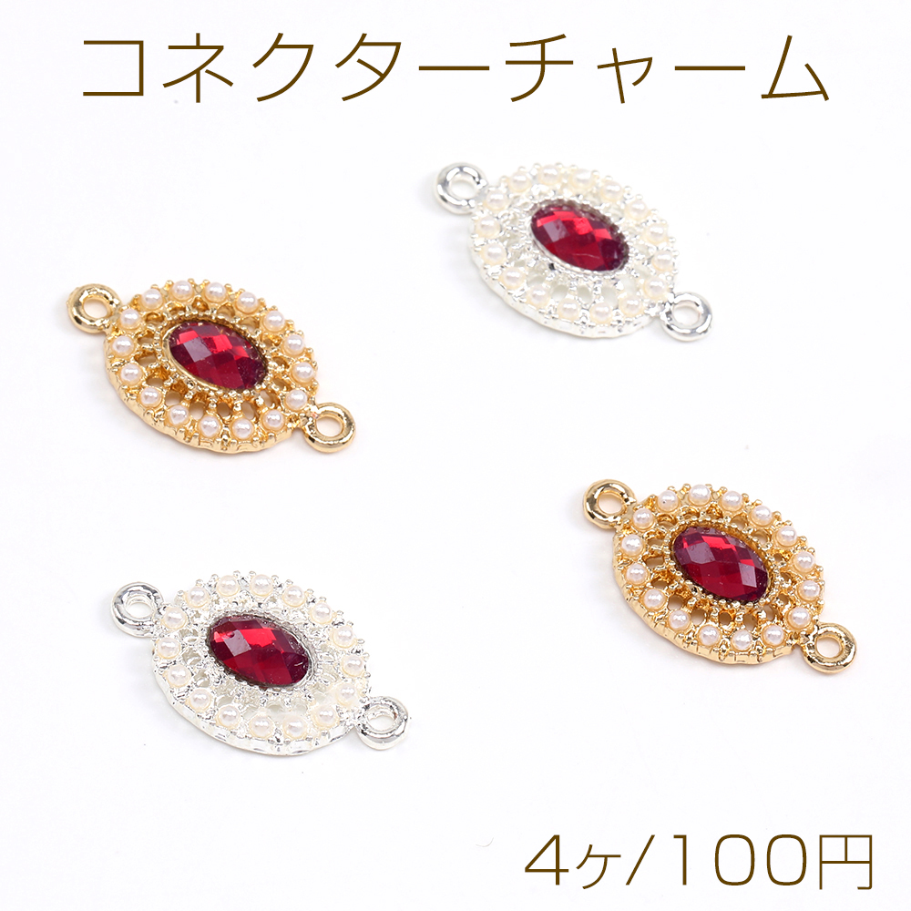 コネクターチャーム ストーン&パール付きチャーム オーバル 2カン付き 10×18mm(4ヶ)