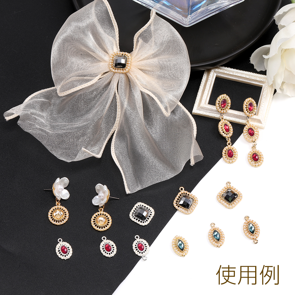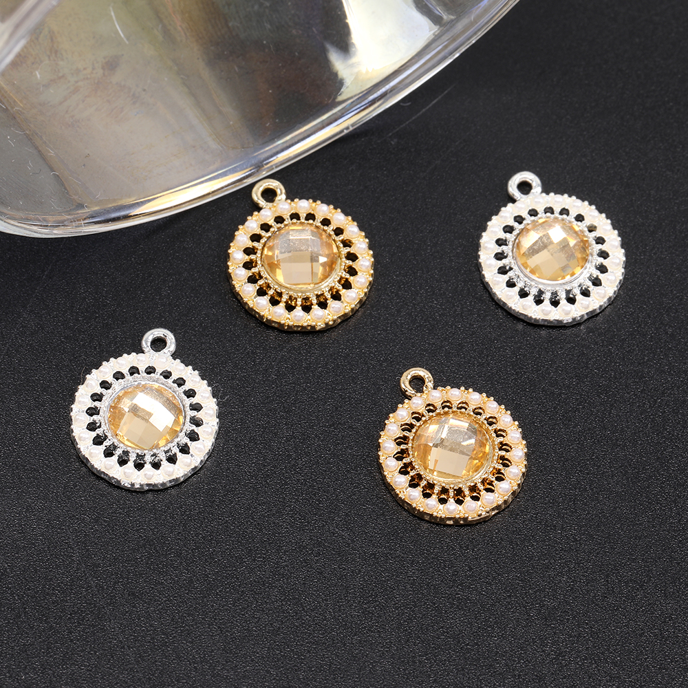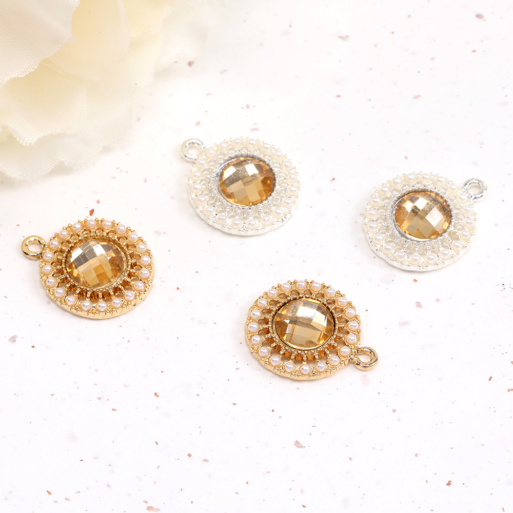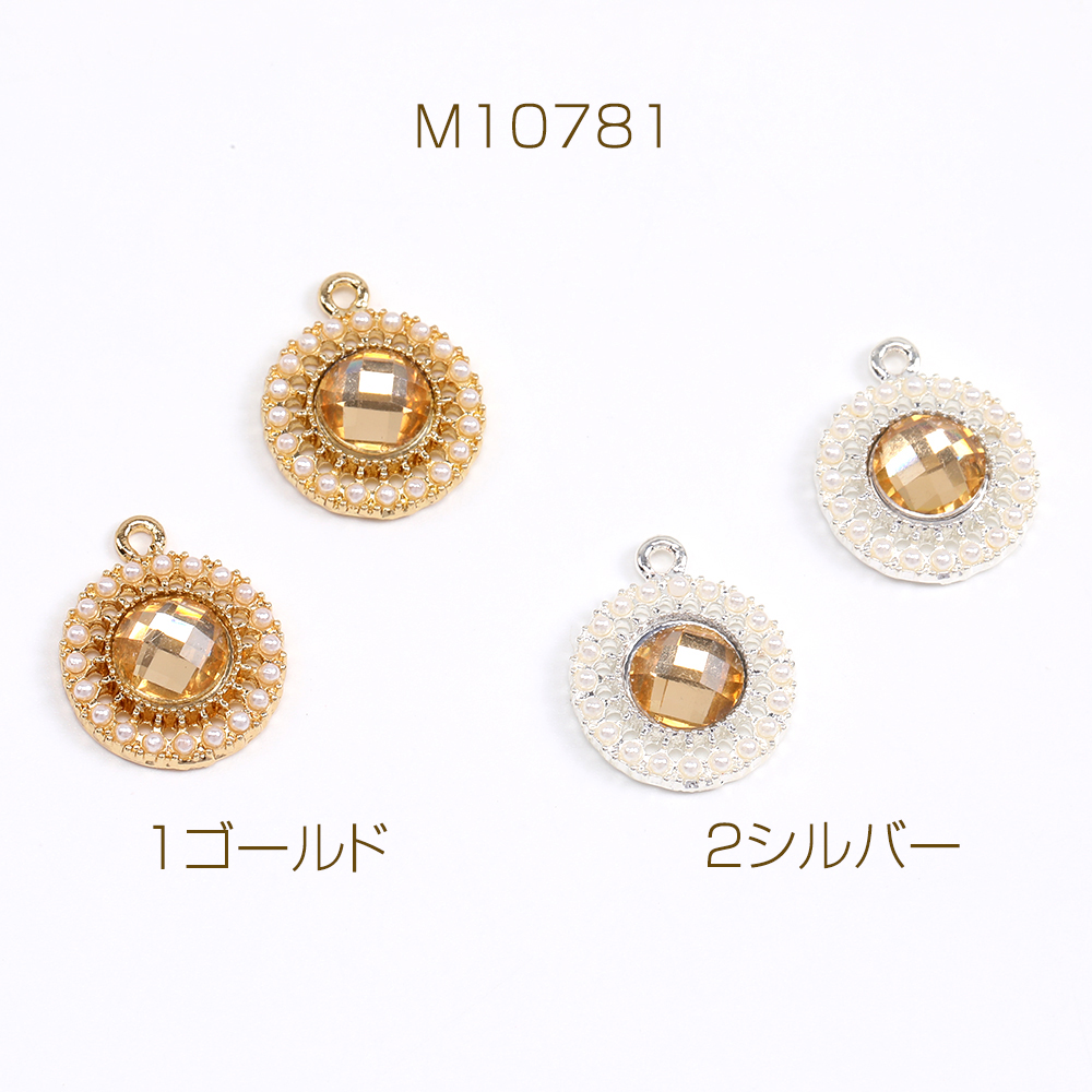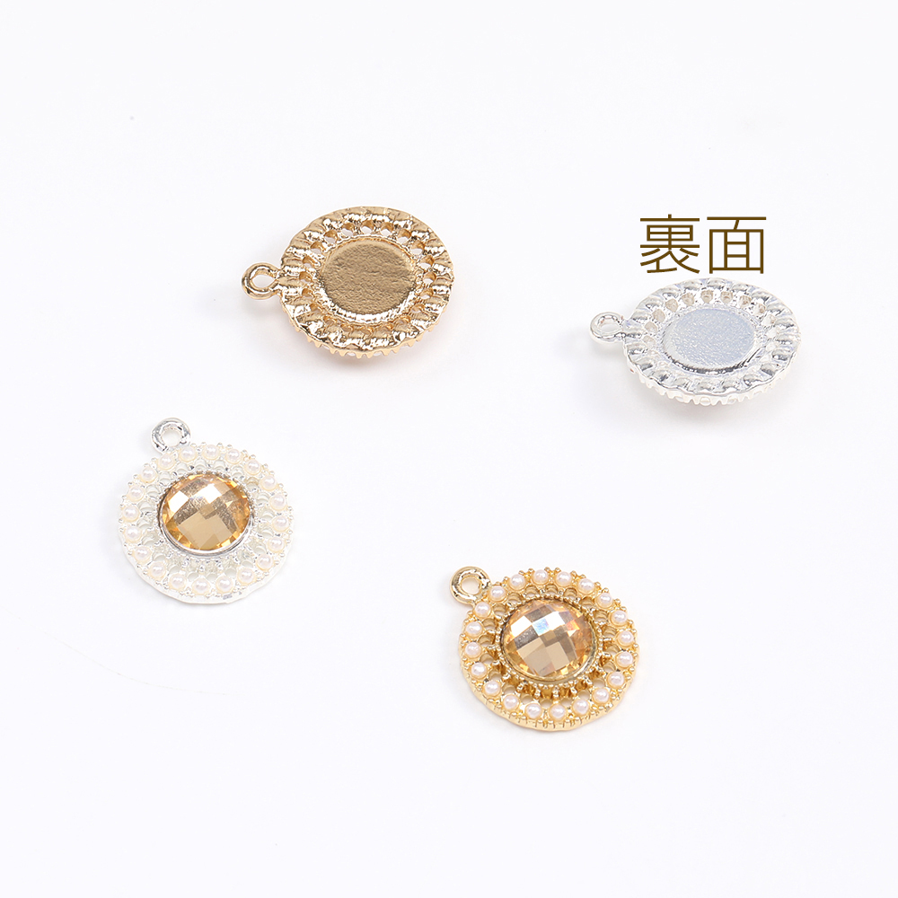 メタルチャーム ストーン&パール付きチャーム ラウンド 14×17mm(4ヶ)