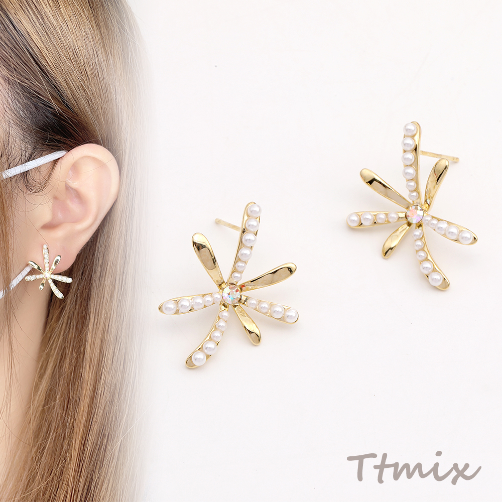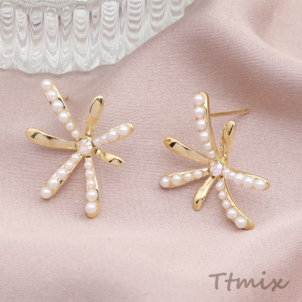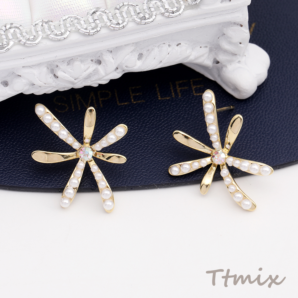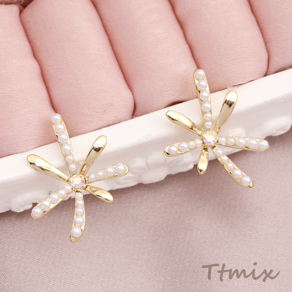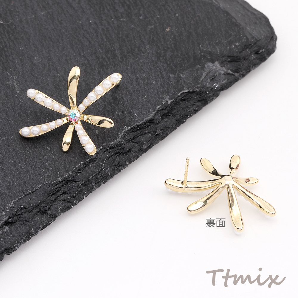 パールピアス フラワーのピアス 18×25mm ゴールド(1ペア)