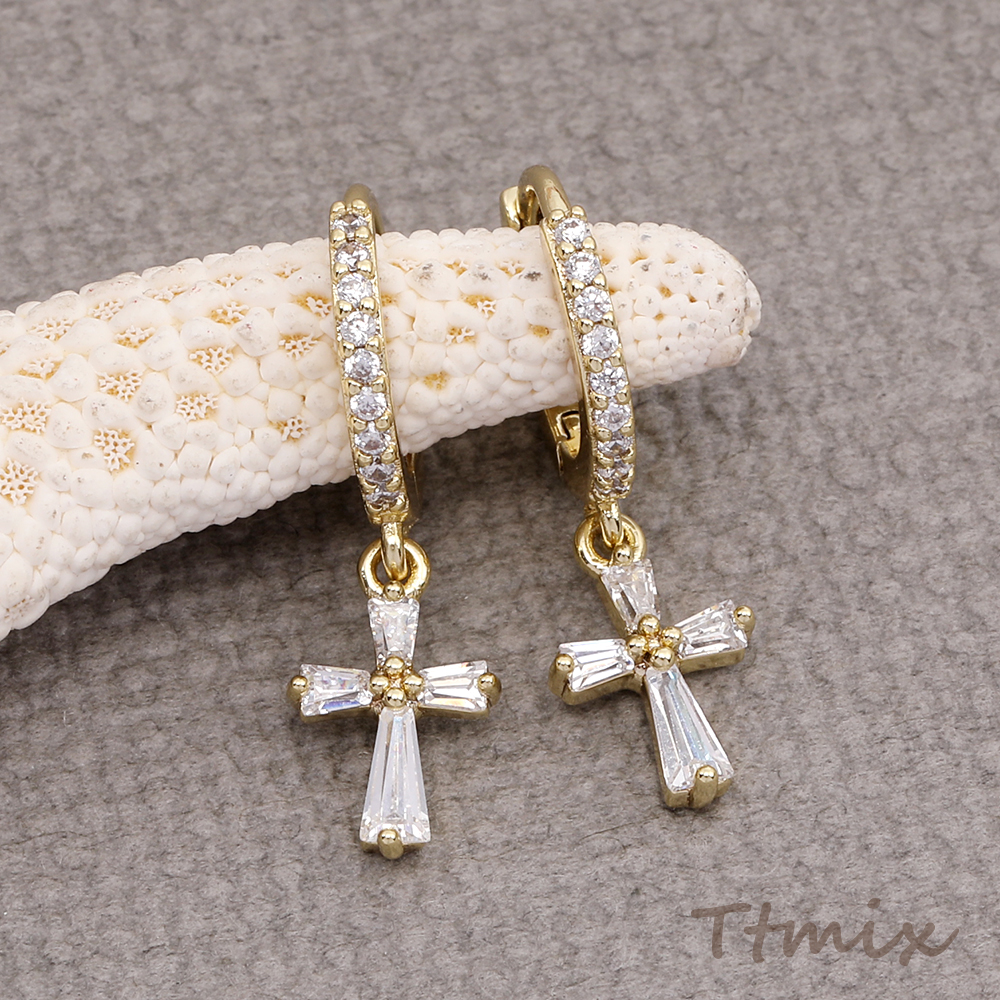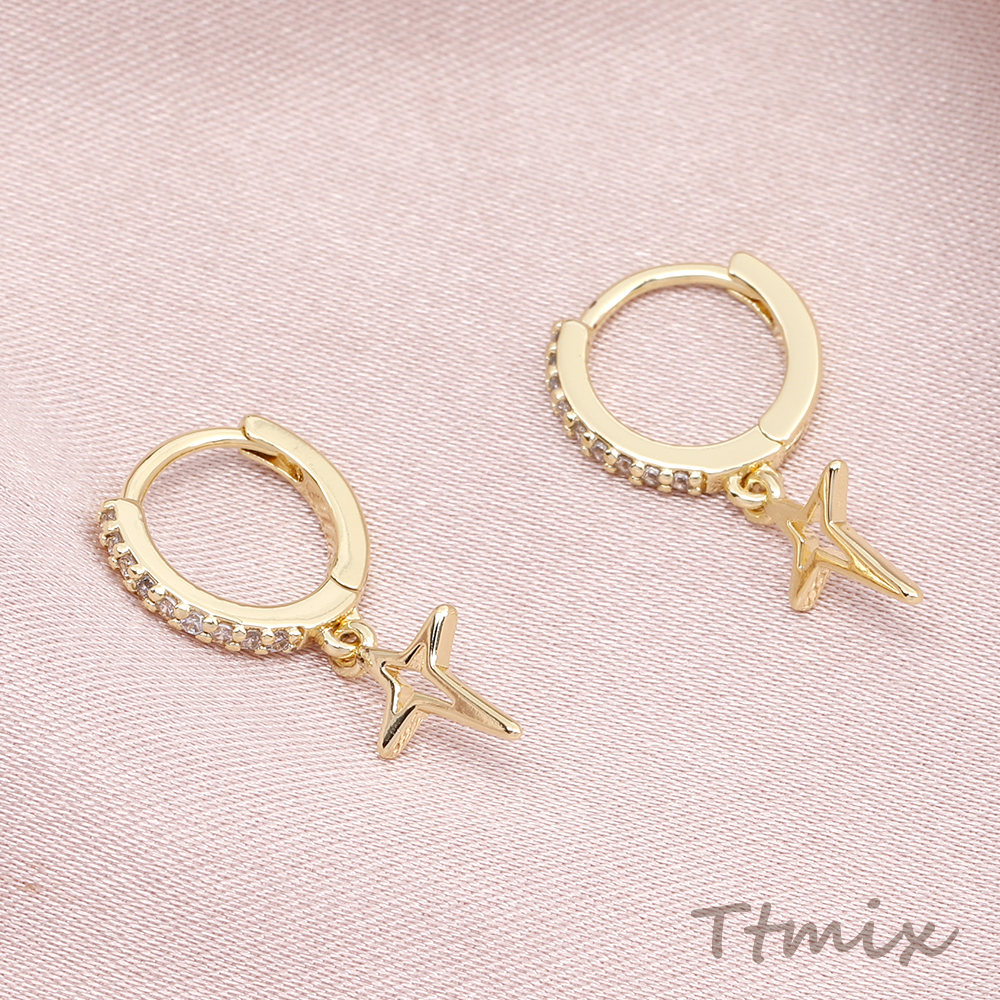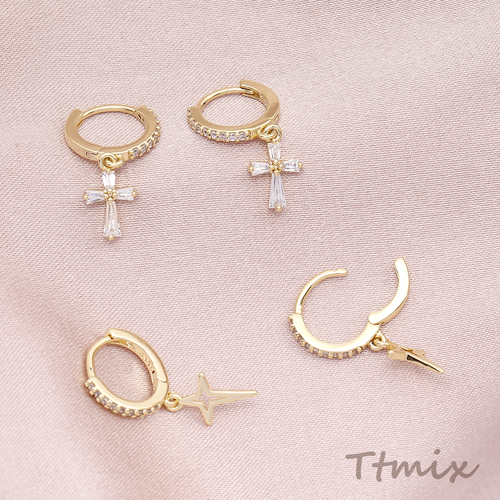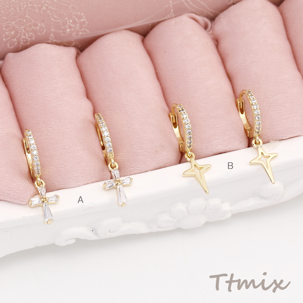 ジルコニアフープピアス 十字架付き 星形付き ゴールド