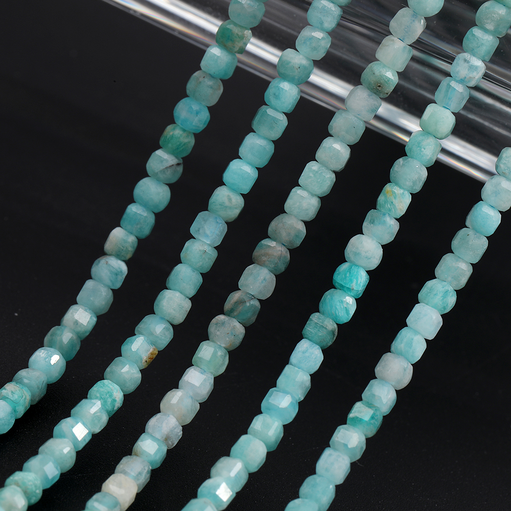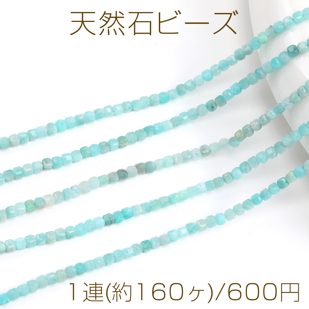 天然石ビーズ アマゾナイト キューブ多面カット 2×2mm 1連(約160ヶ)