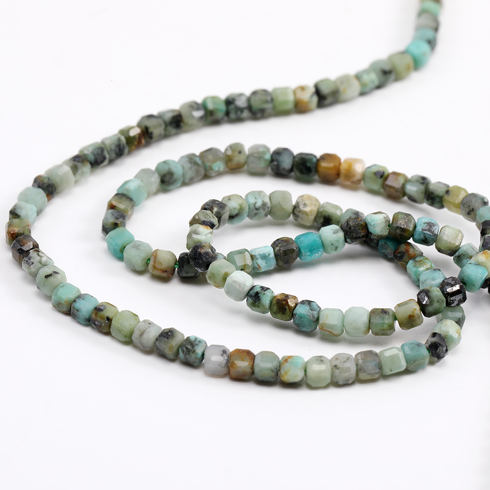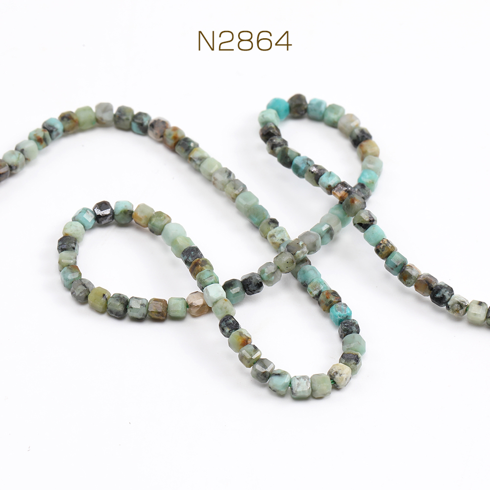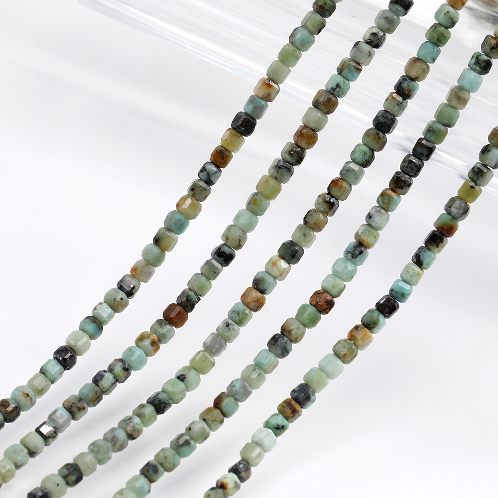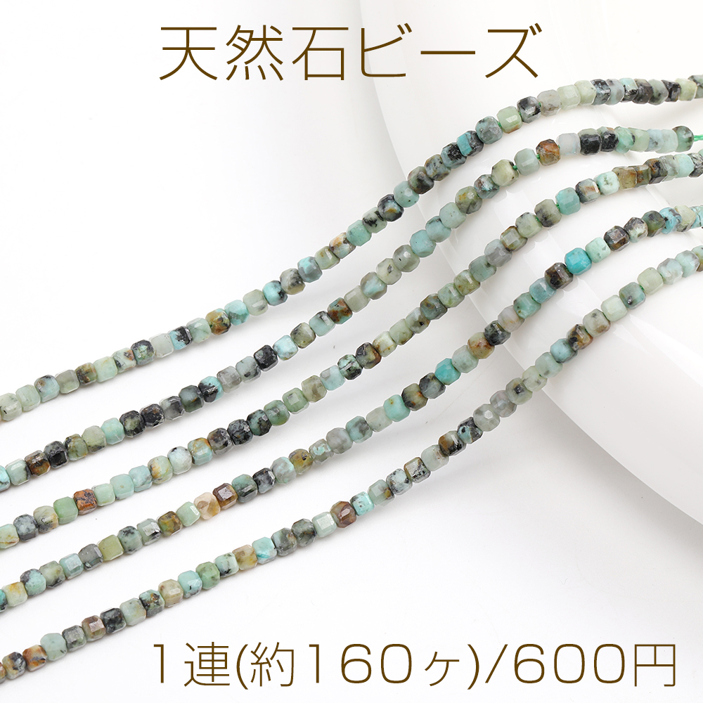 天然石ビーズ アフリカターコイズ キューブ多面カット 2×2mm 1連(約160ヶ)