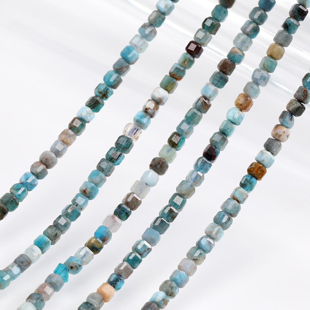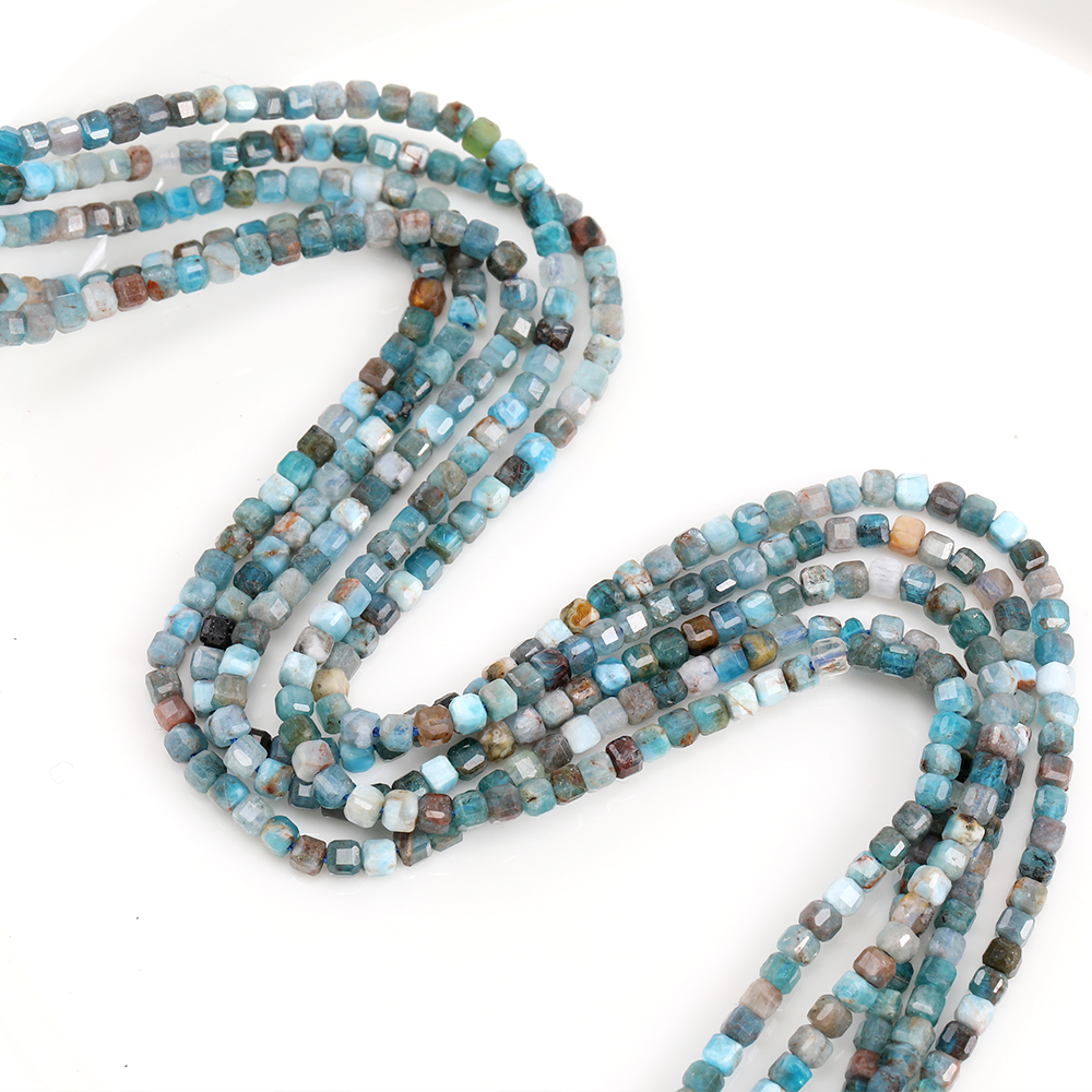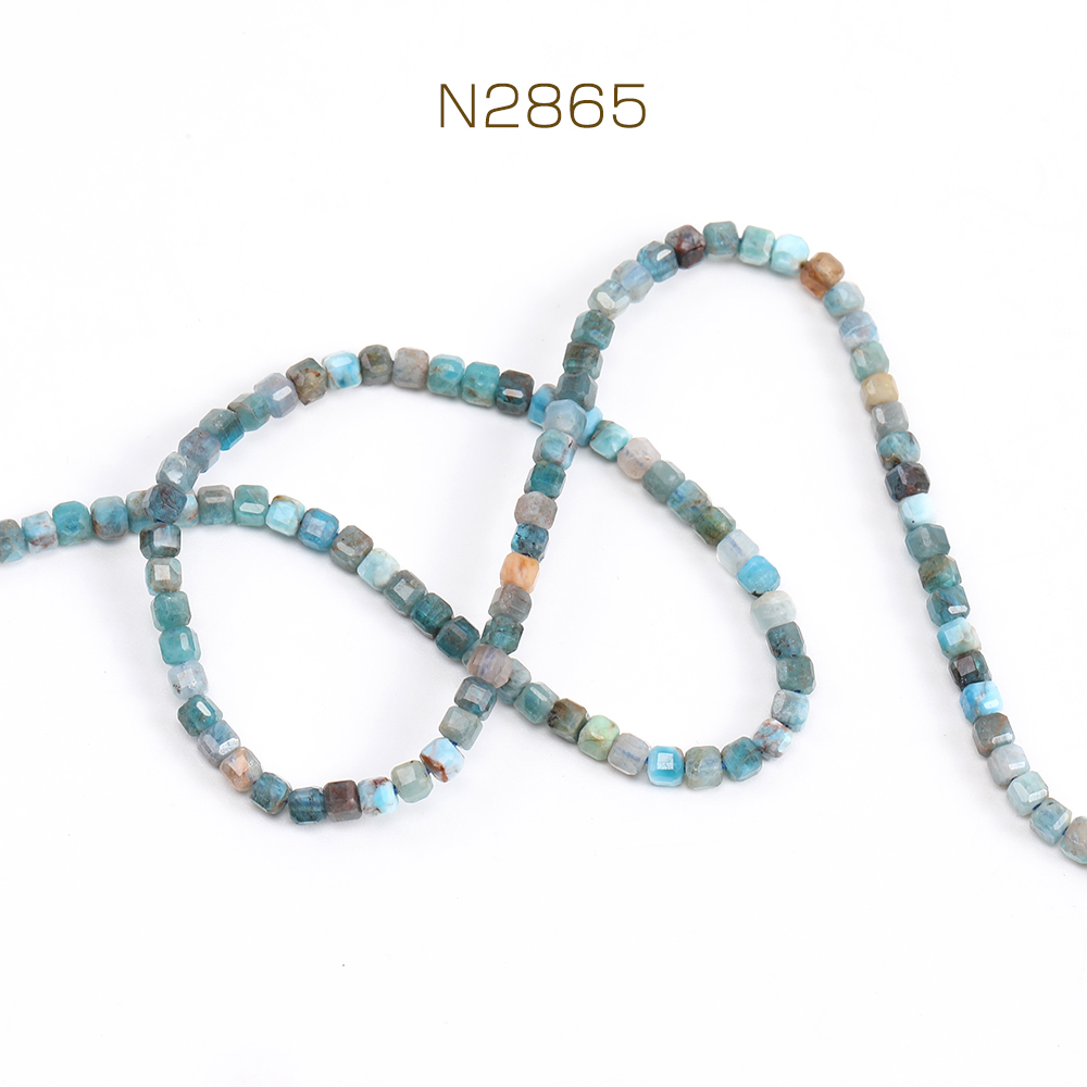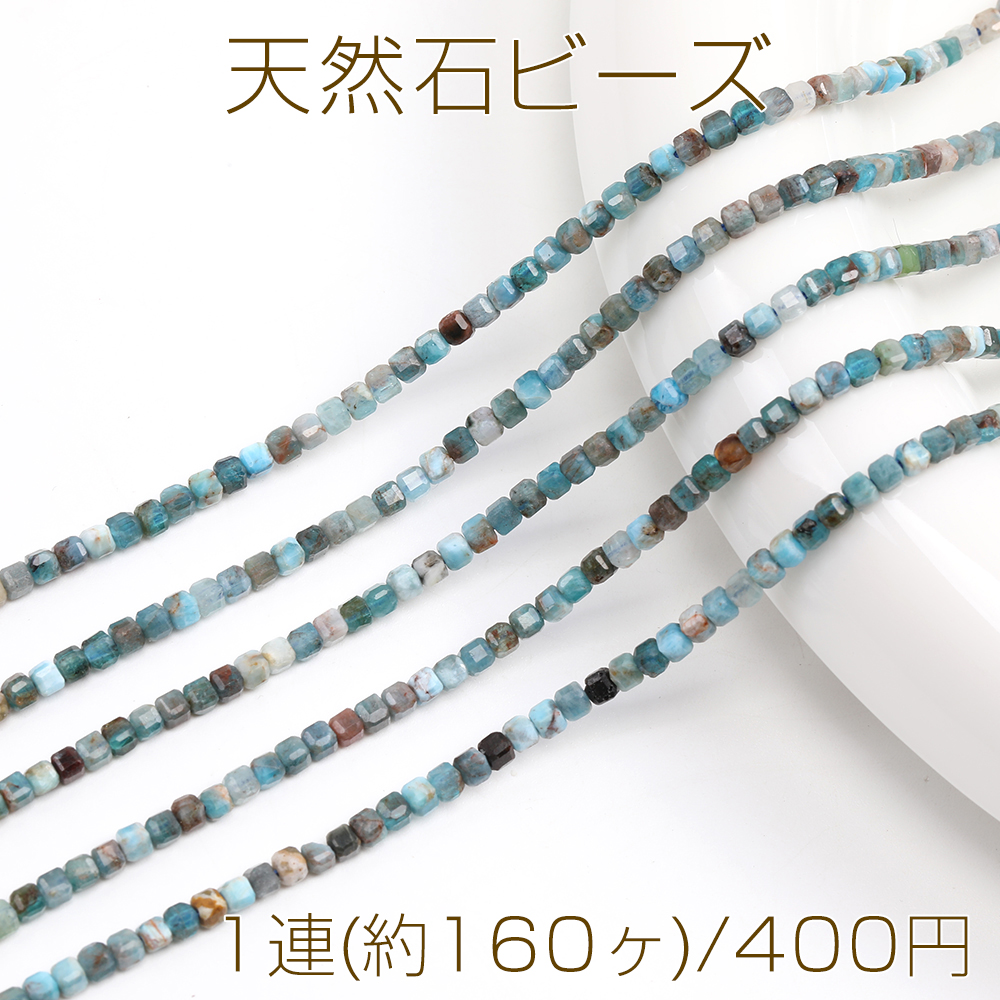 天然石ビーズ アパタイト キューブ多面カット 2×2mm 1連(約160ヶ)