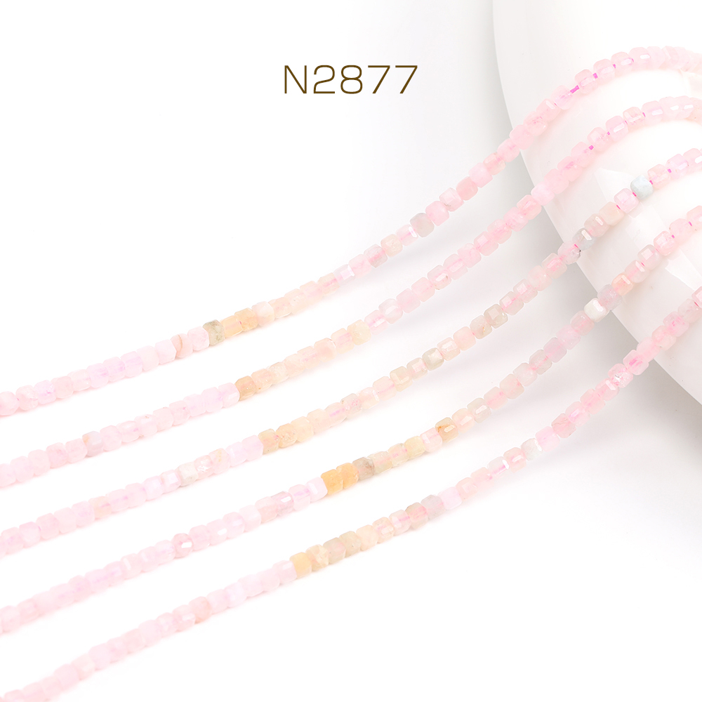 天然石ビーズ モルガナイト グラデーションカラー キューブ多面カット 2×2mm 1連(約170ヶ)