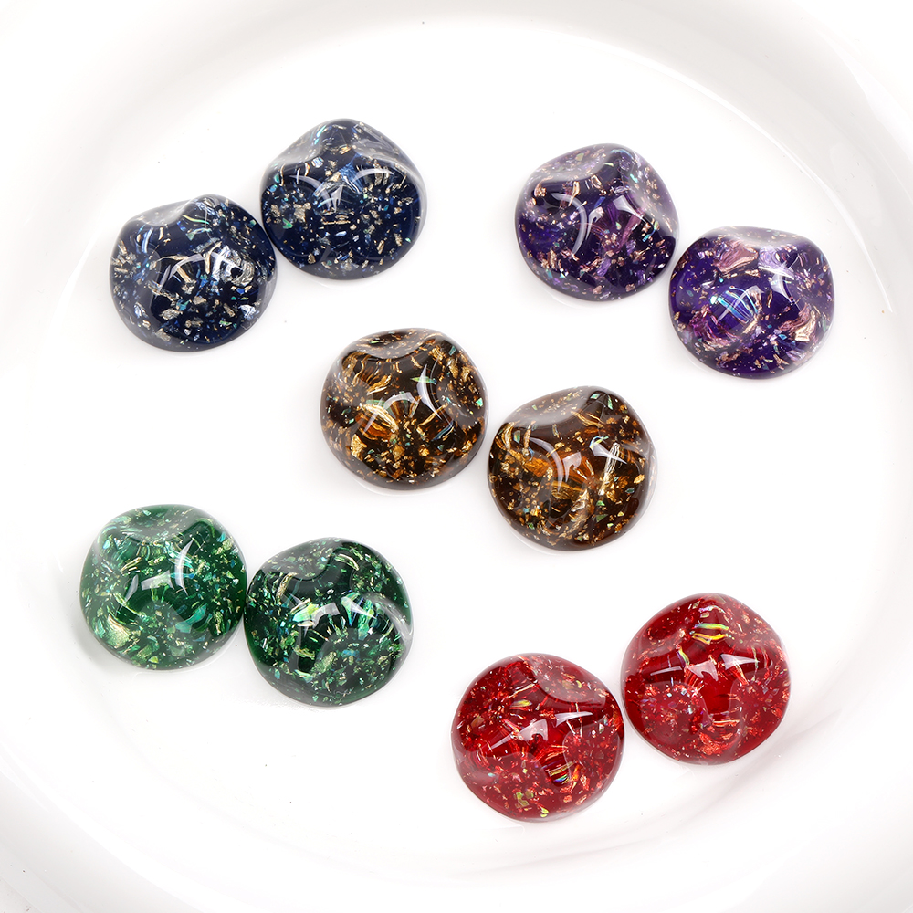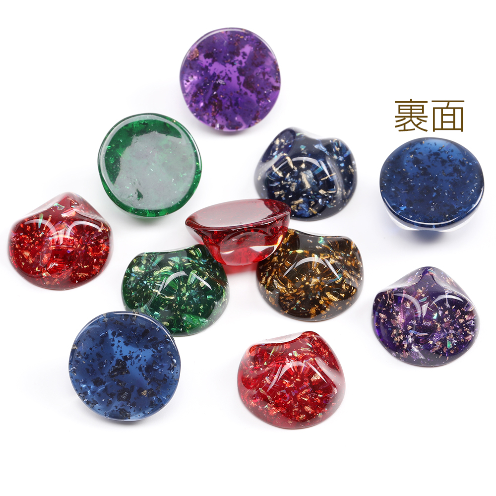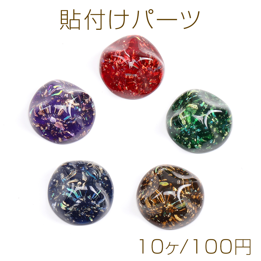 貼付けパーツ 樹脂貼付けパーツ 樹脂カボション 金箔&銀箔入り 変形半円 19.5mm(10ヶ)