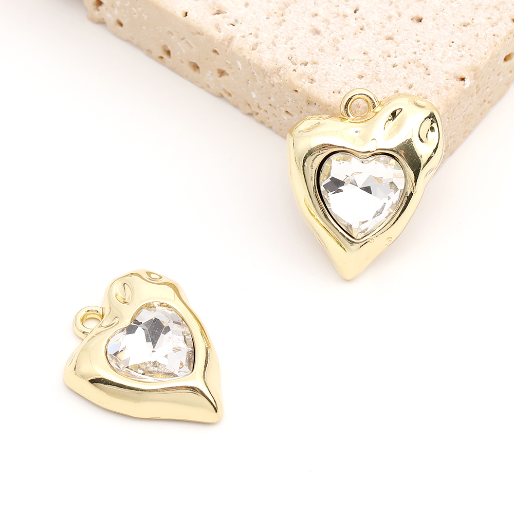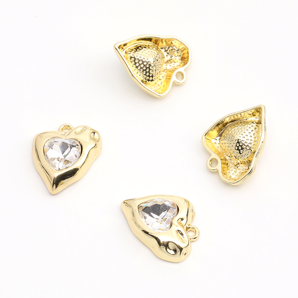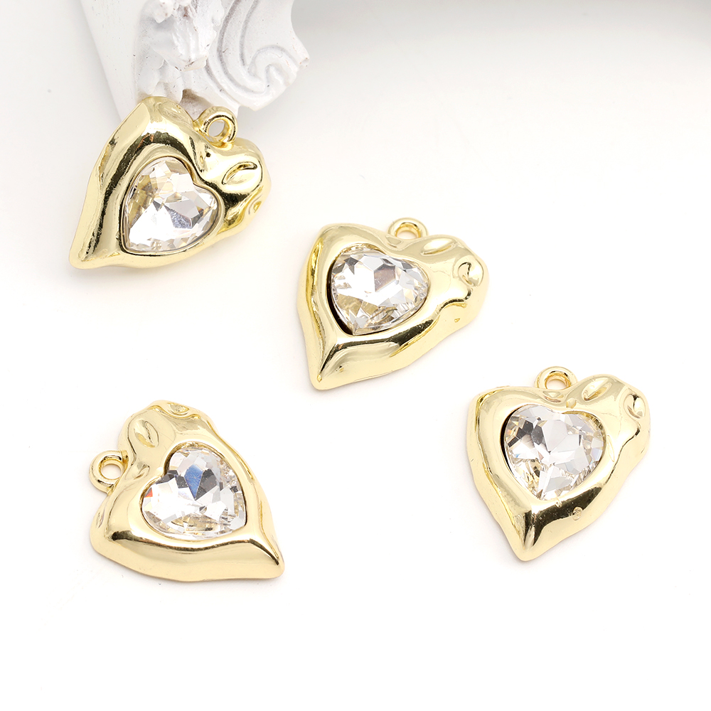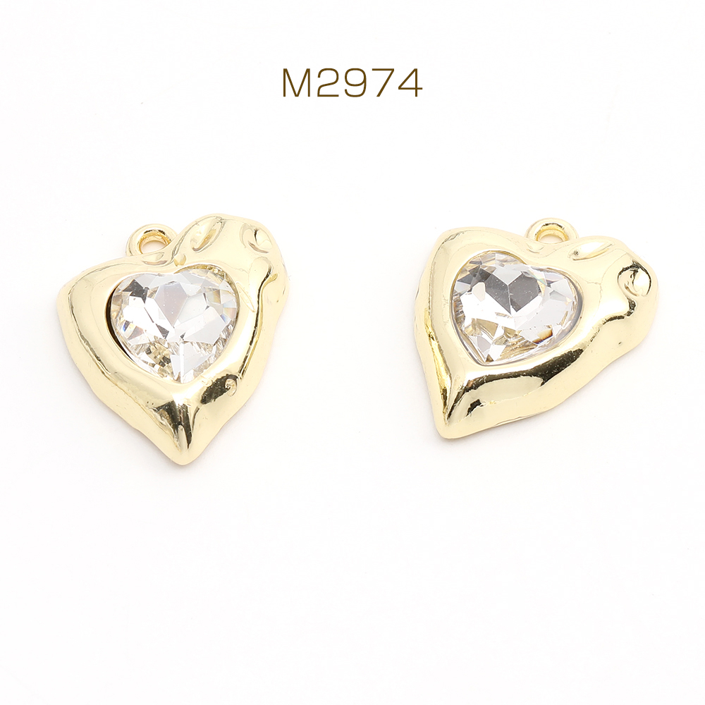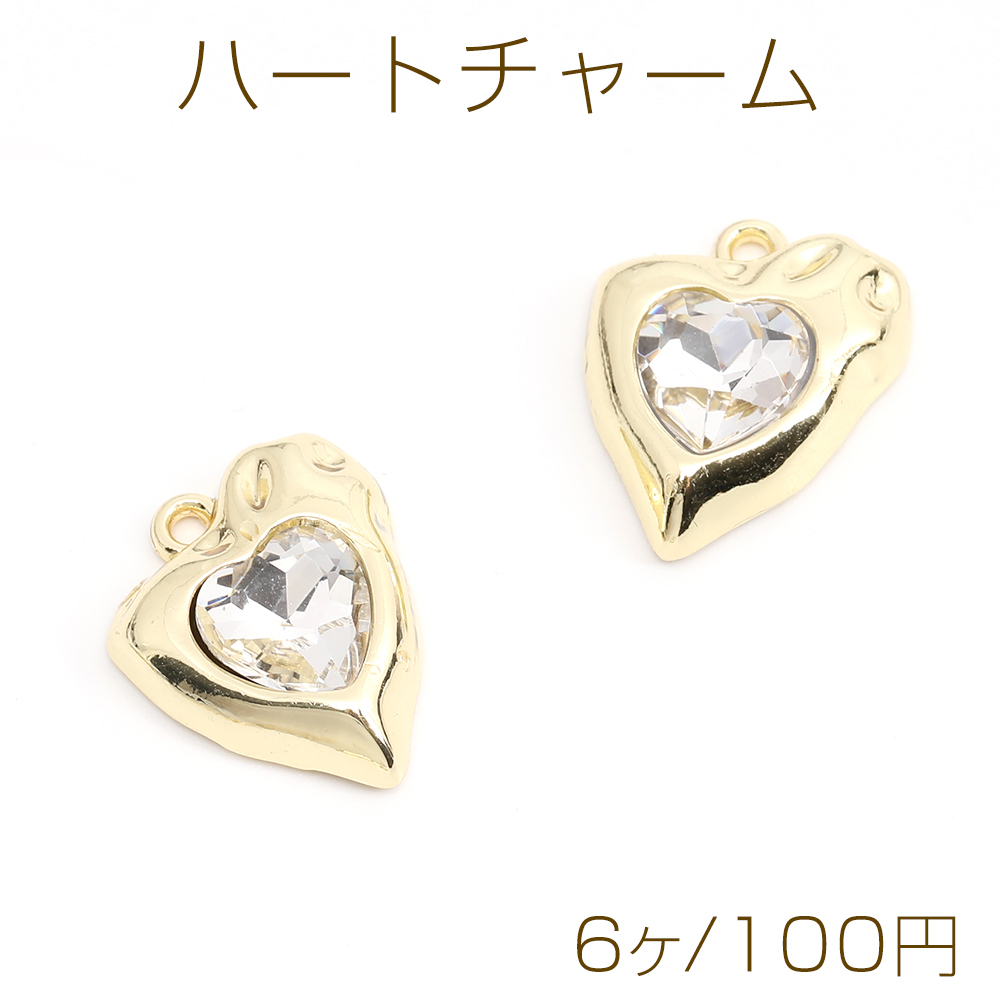 ハートチャーム ラインストーン付きメタルチャーム 15×18mm ゴールド(6ヶ)