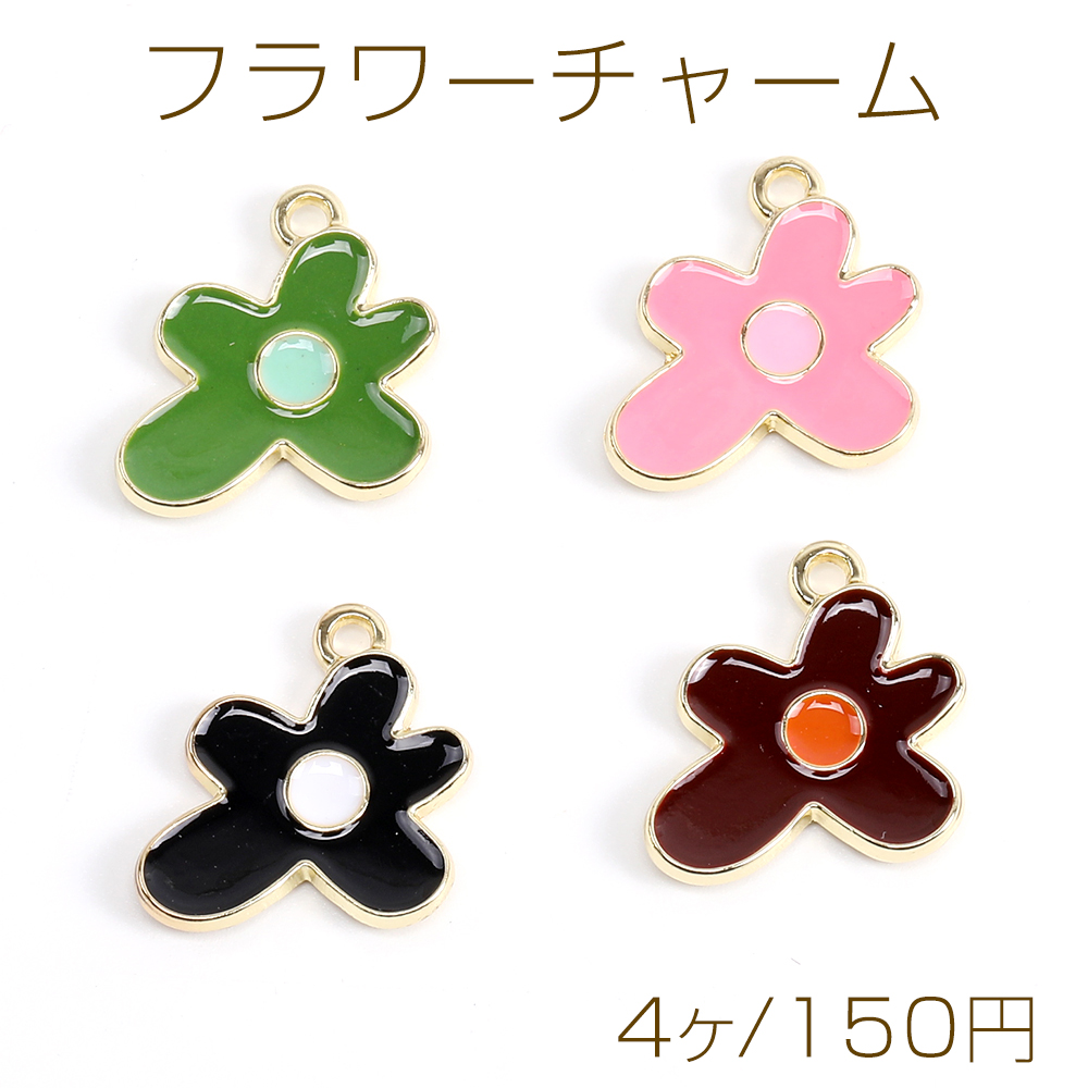 フラワーチャーム エポチャーム 15×17mm ゴールド(4ヶ)