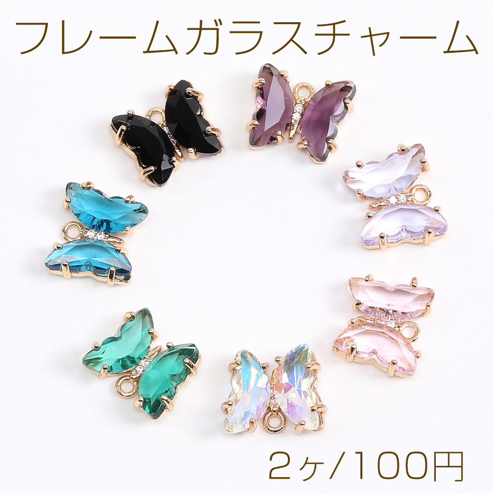 フレームガラスチャーム 蝶チャーム 10×12mm ゴールド(2ヶ)