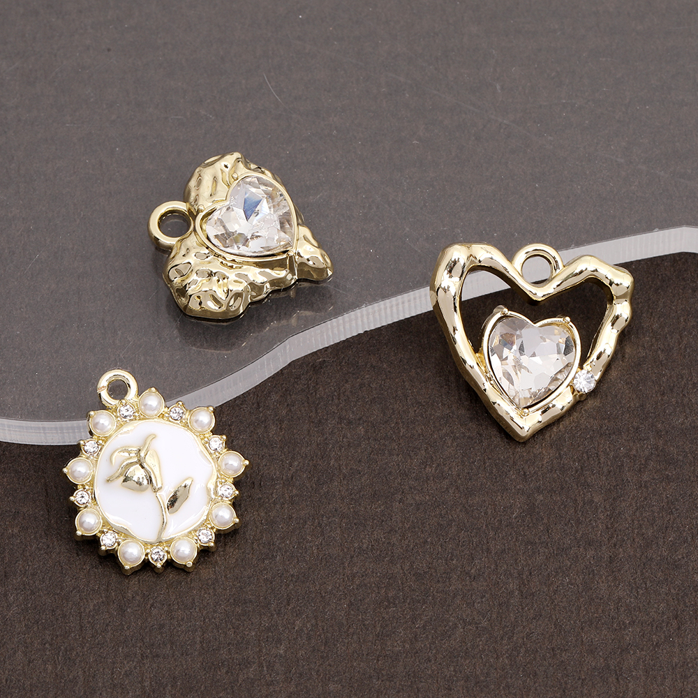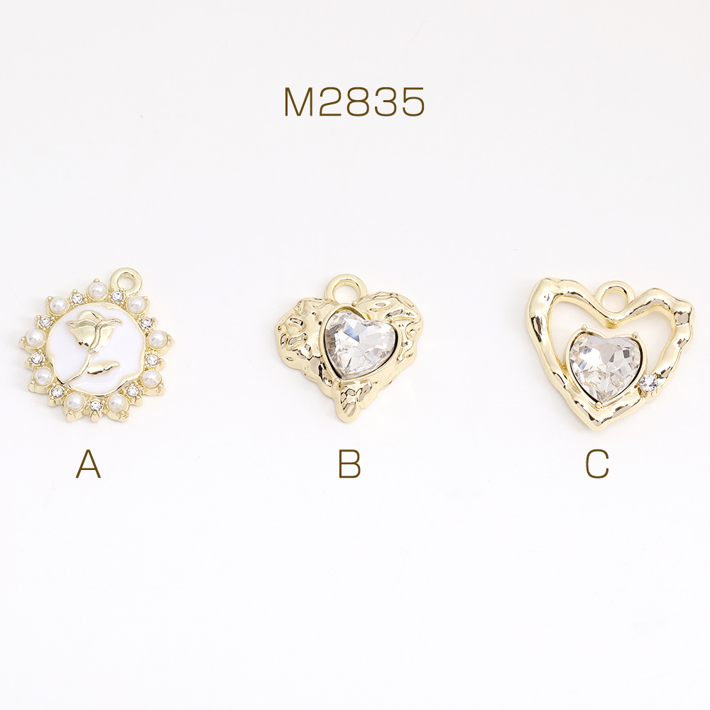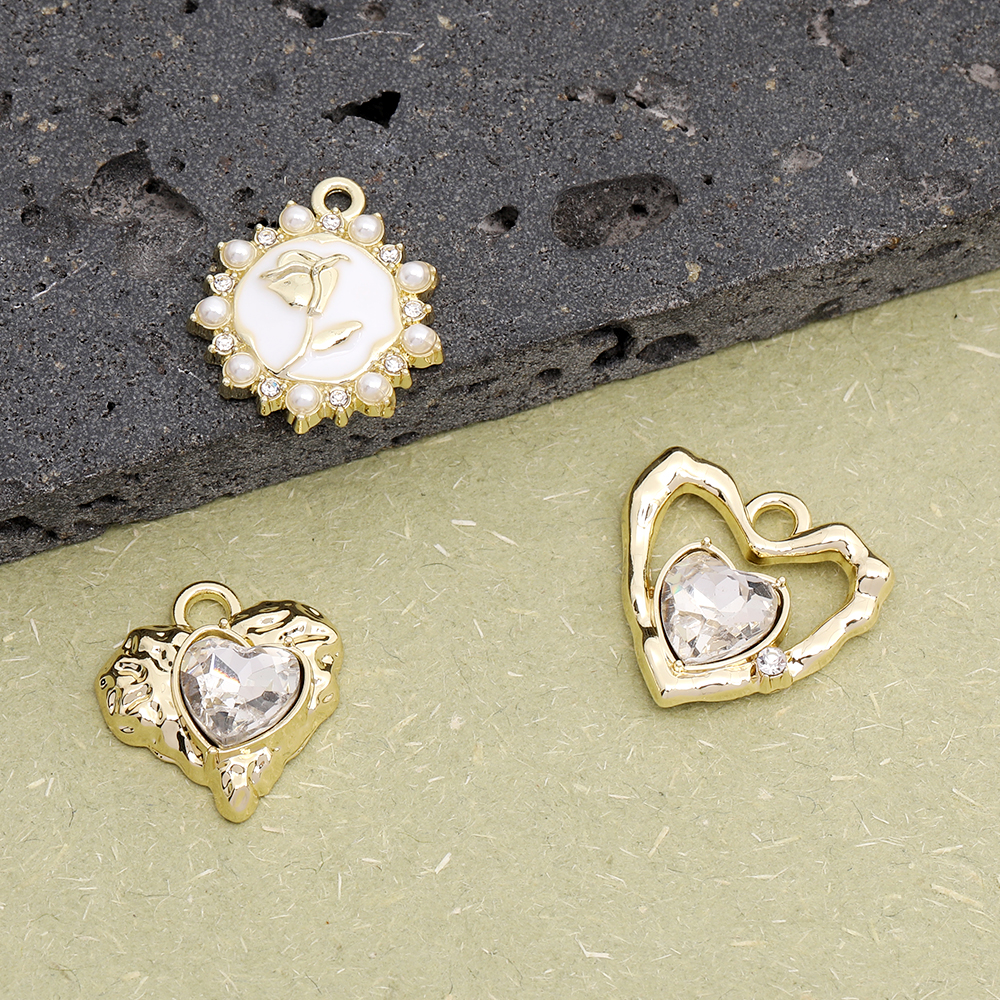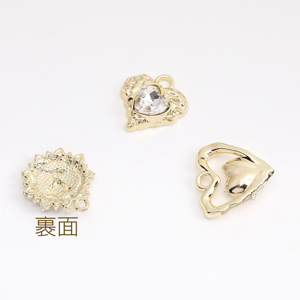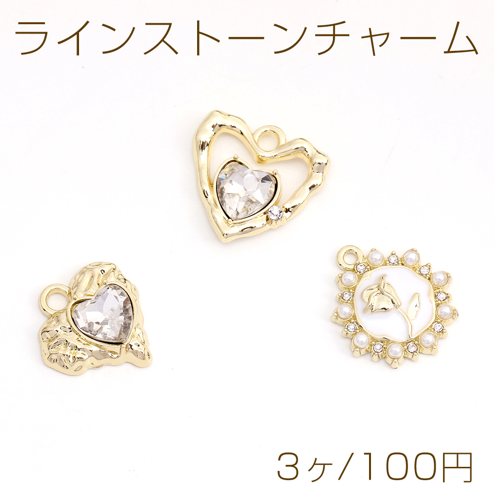 ラインストーンチャーム メタルチャーム ハート型 バラ ゴールド