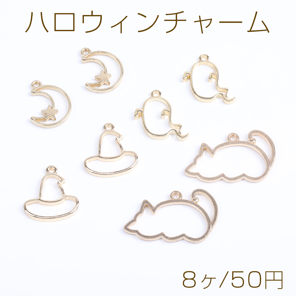 限定商品!ハロウィンチャーム レジンフレームチャーム ミックスゴールド(8ヶ)