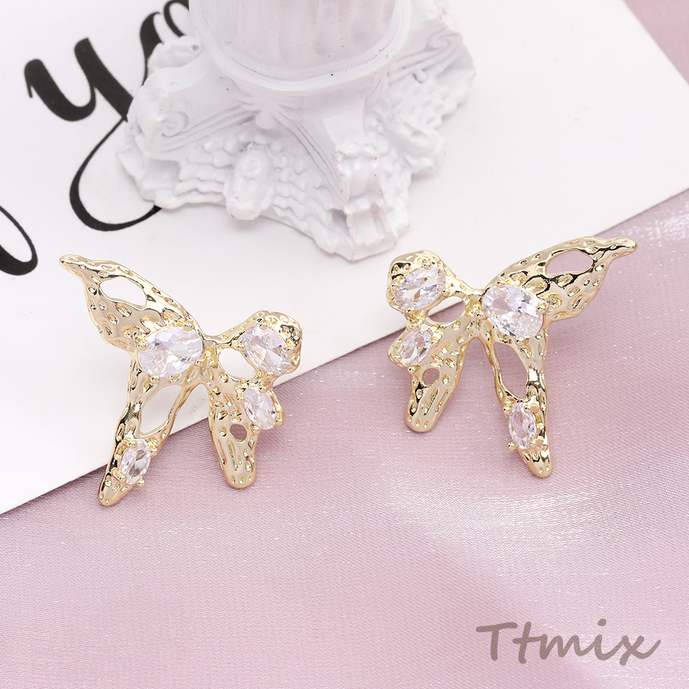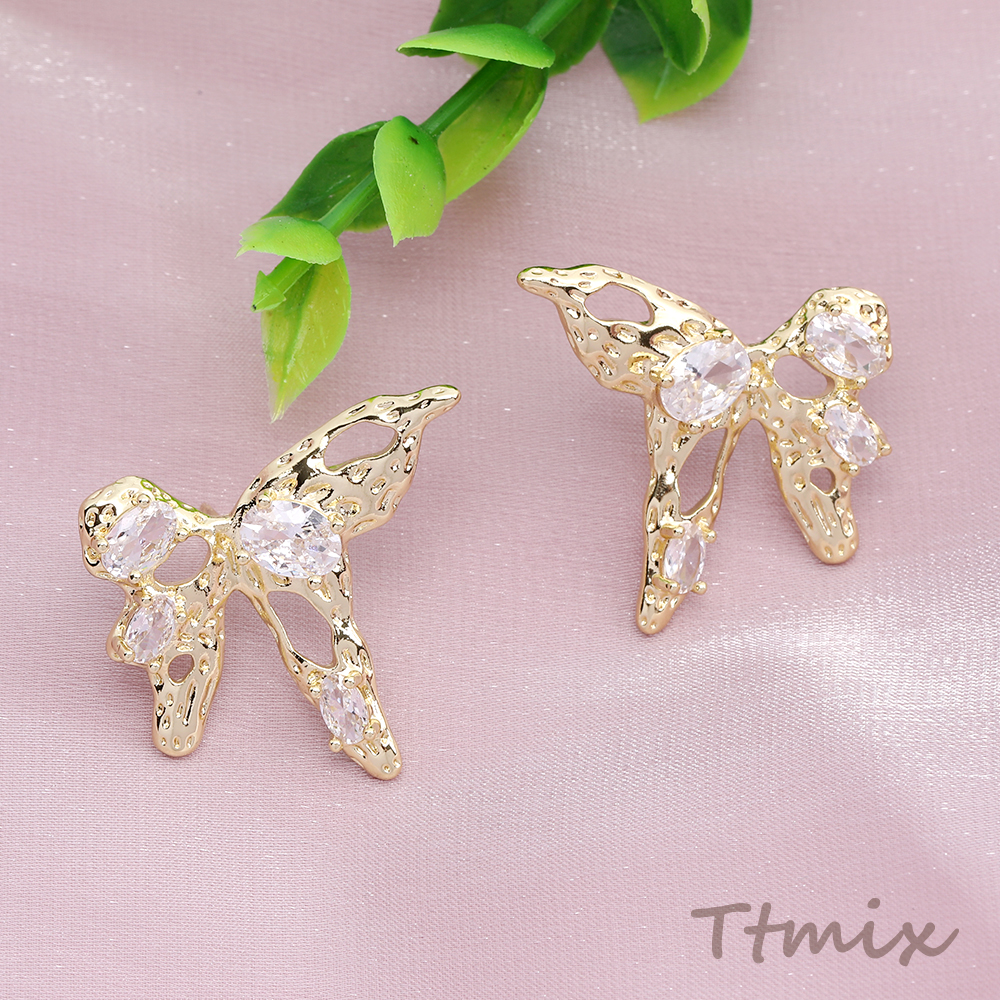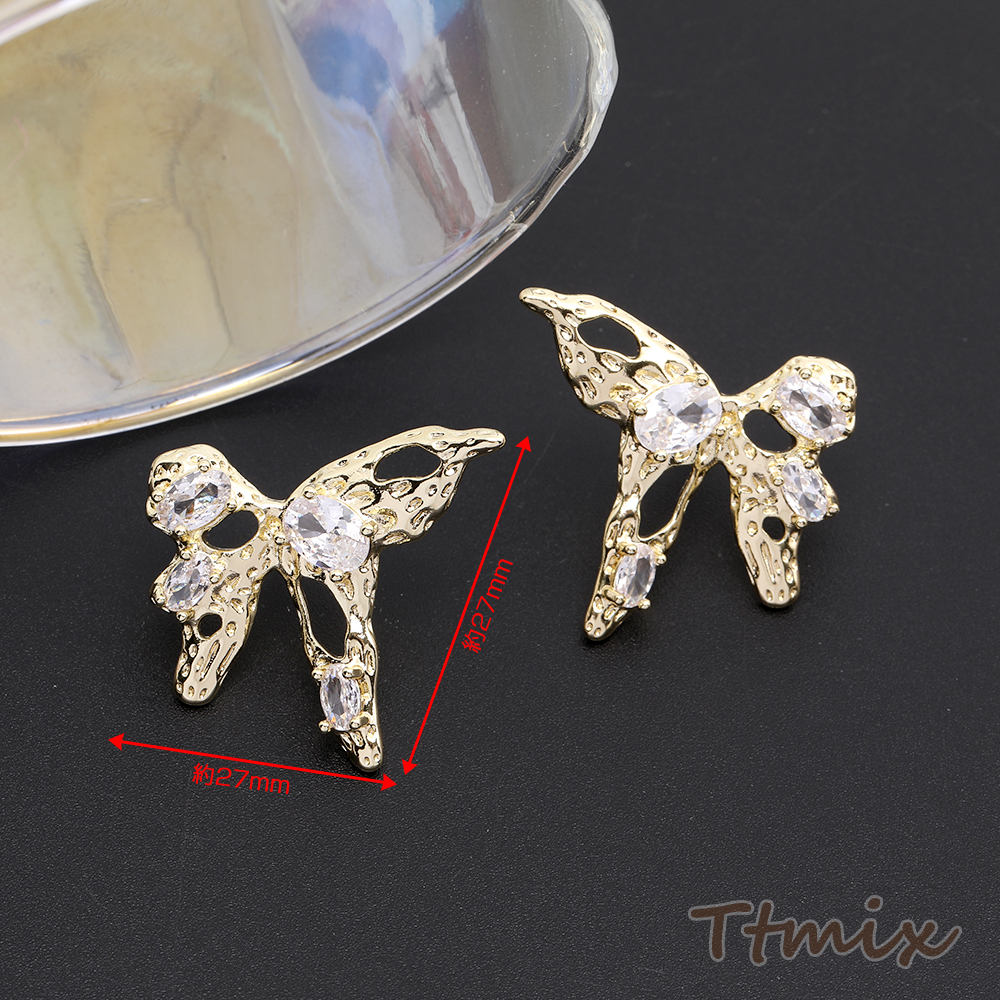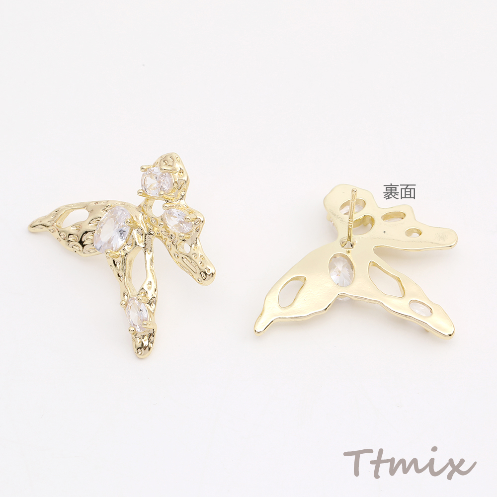 デザインピアス ジルコニアピアス 蝶のピアス ゴールド(1ペア)