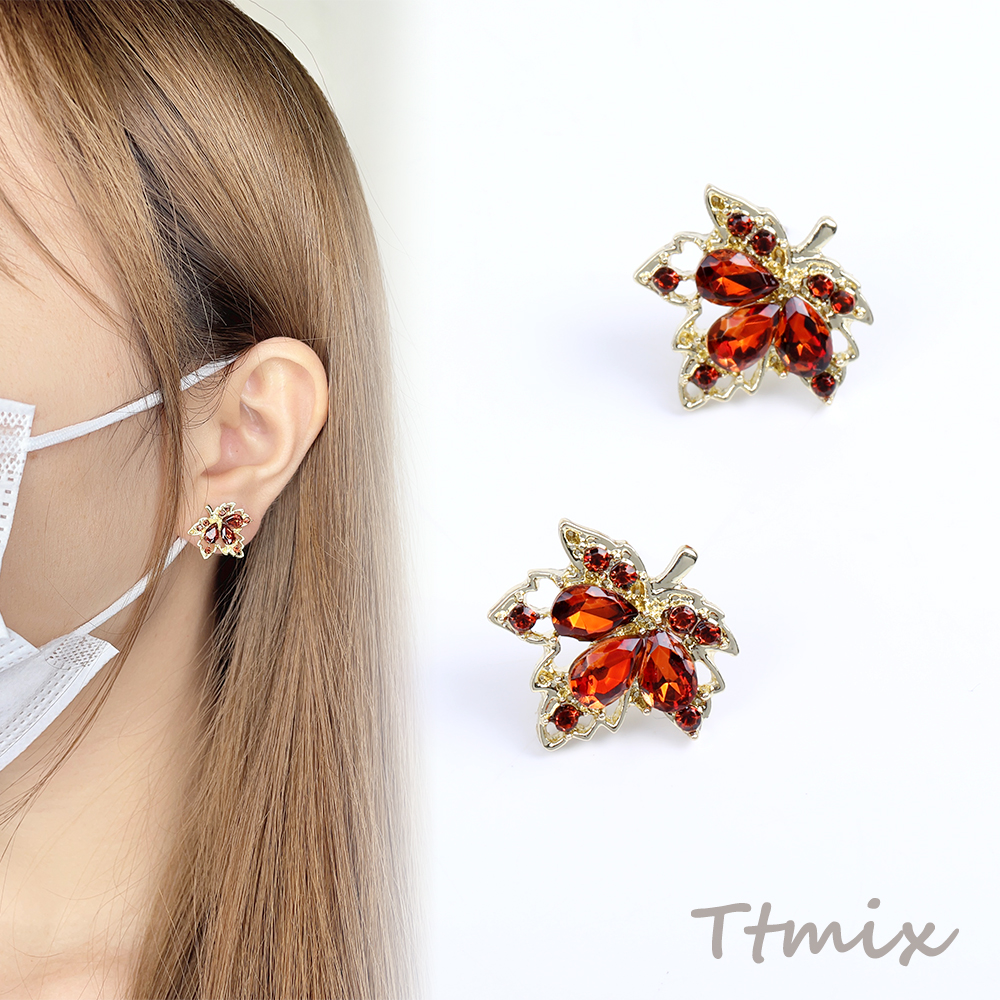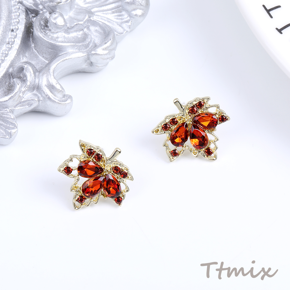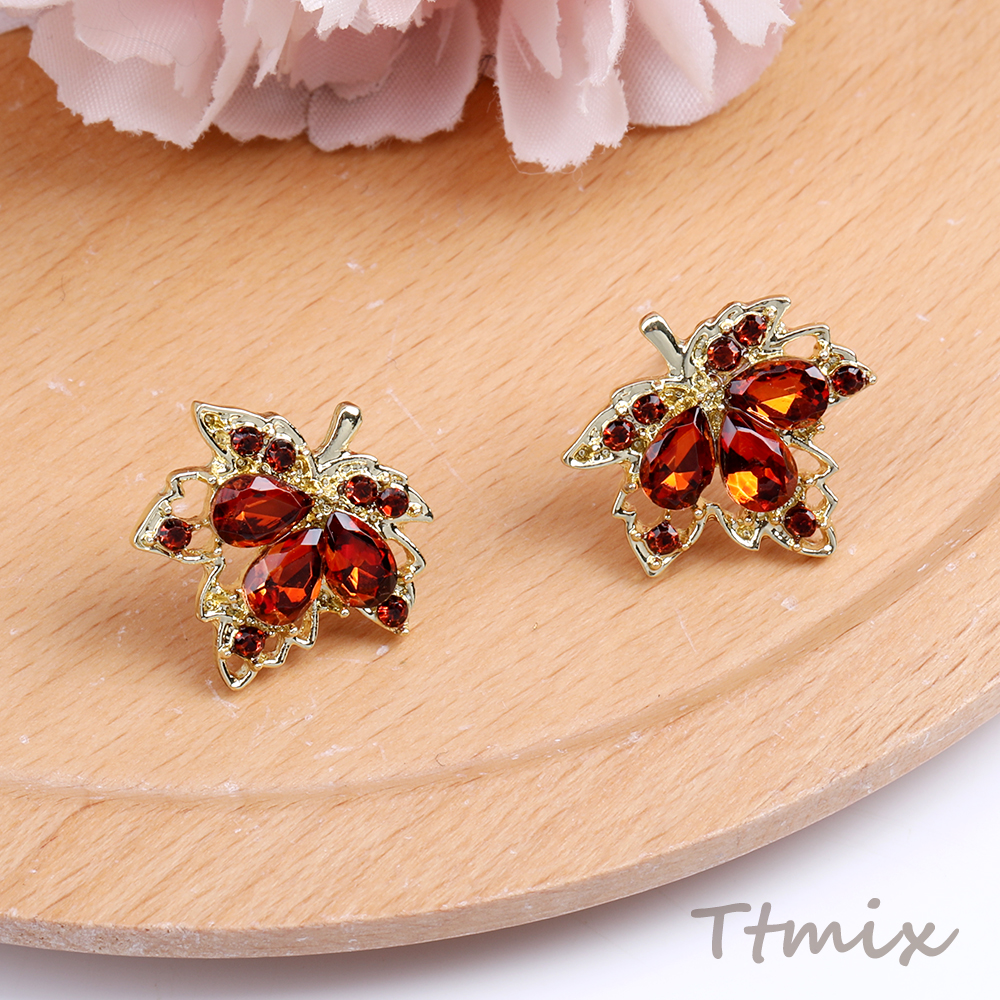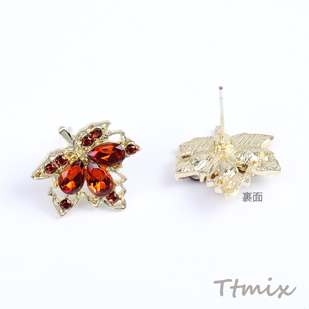デザインピアス カエデの葉のピアス 17×17mm レッド(1ペア)