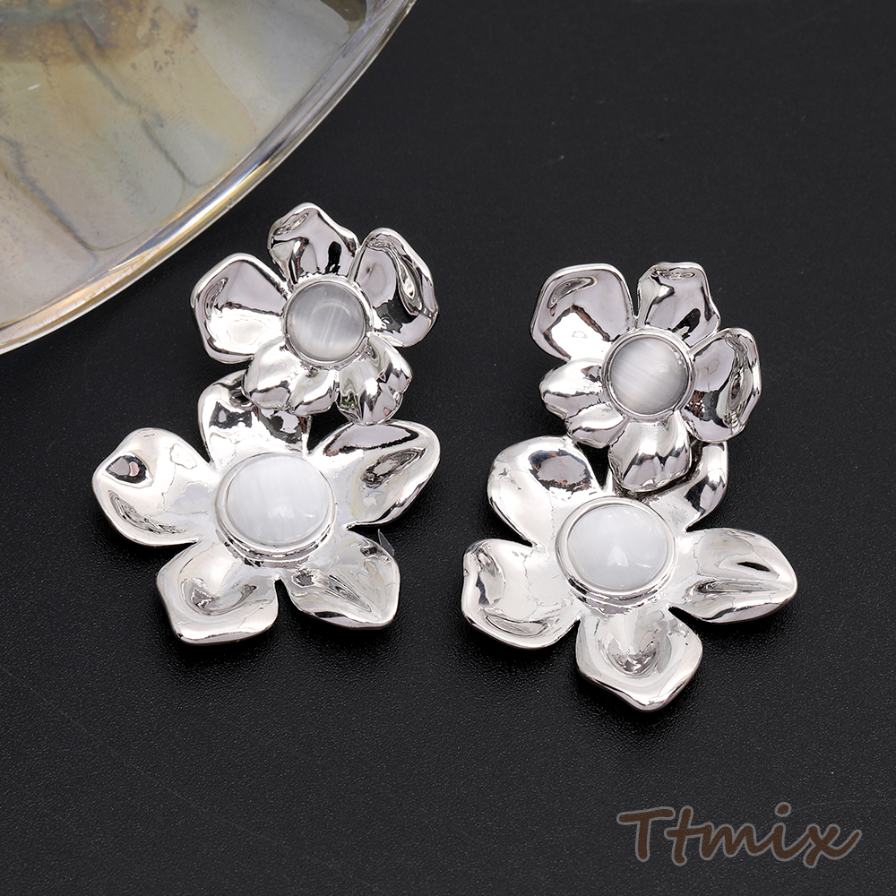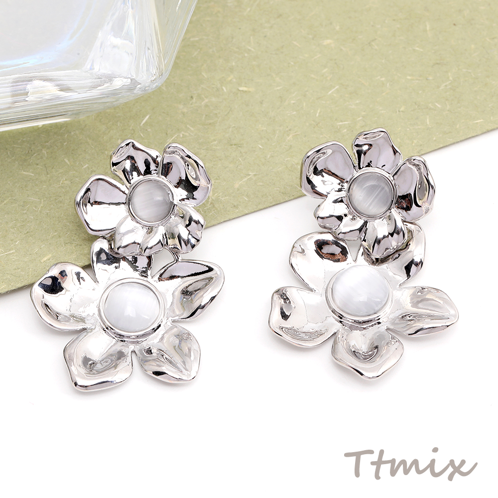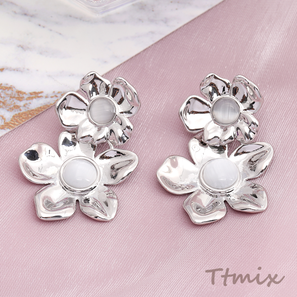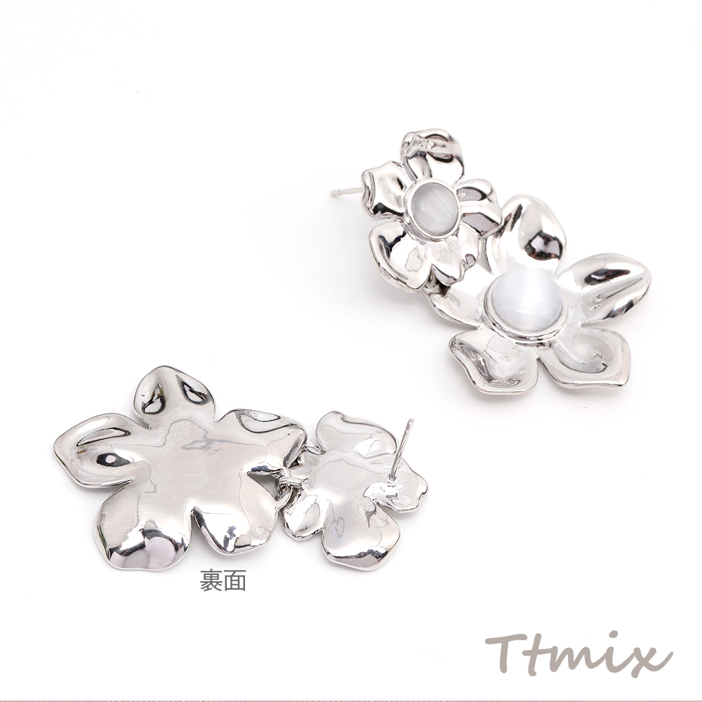 デザインピアス フラワーのピアス ロジウム(1ペア)