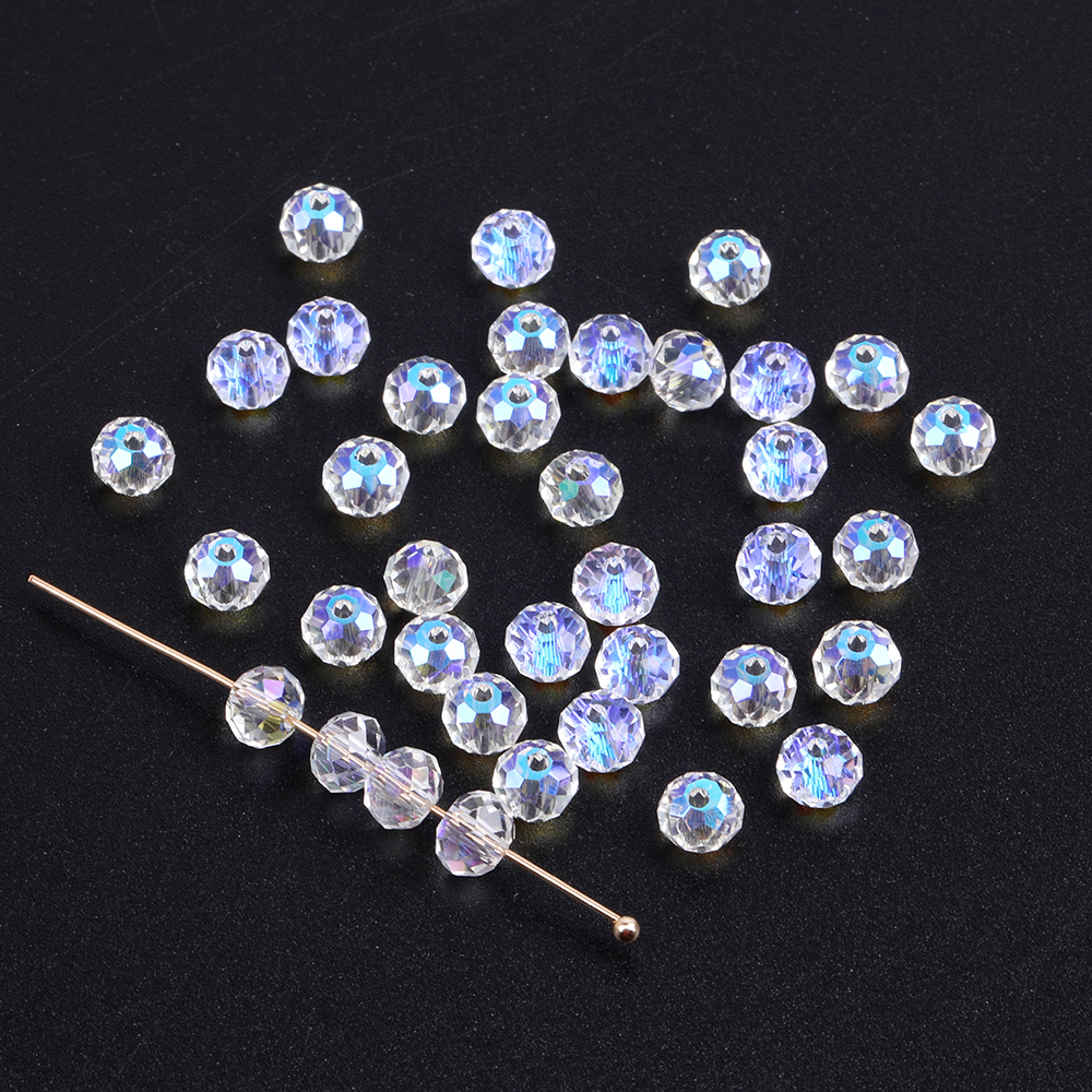 ガラスビーズ ボタンカット 4.5×5.7mm クリアオーロラカラー(20ヶ)
