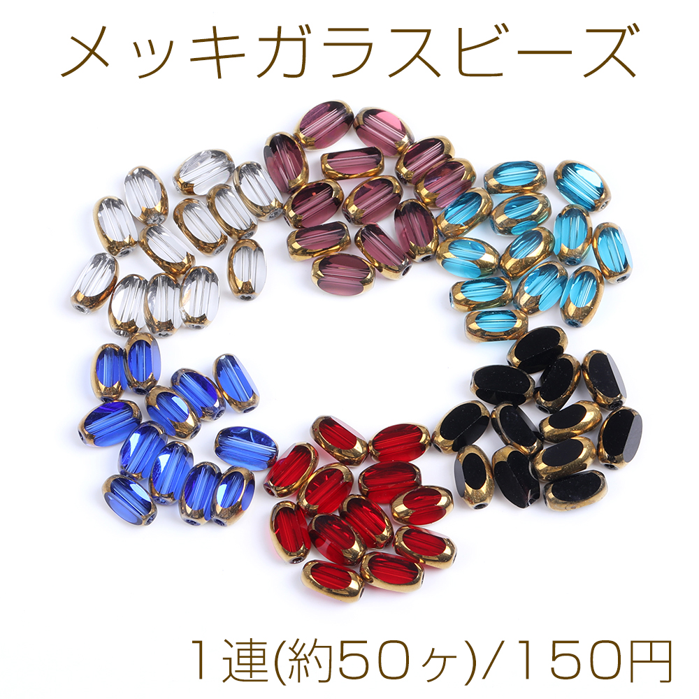 メッキガラスビーズ オーバルカット 3.3×7mm 1連(約50ヶ)