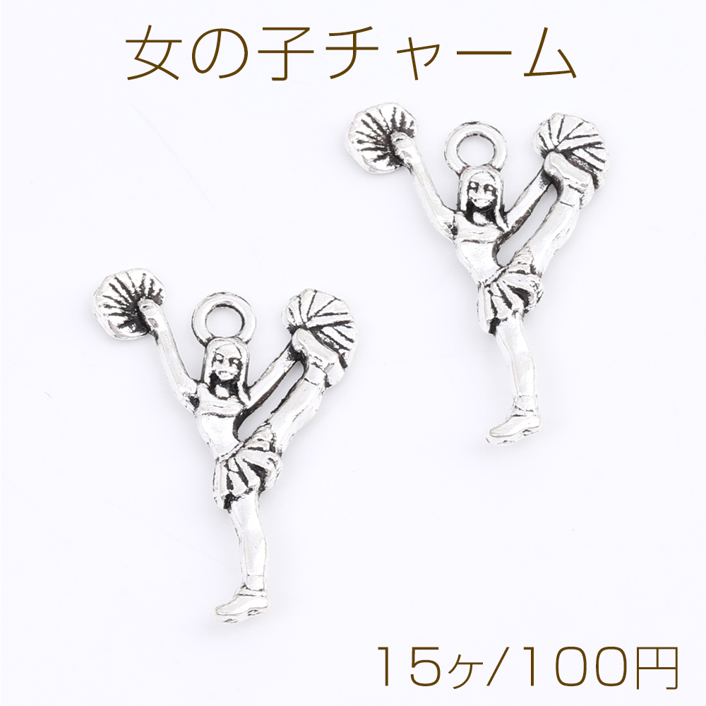 女の子チャーム メタルチャーム 17.5×23mm アンティークシルバー(15ヶ)