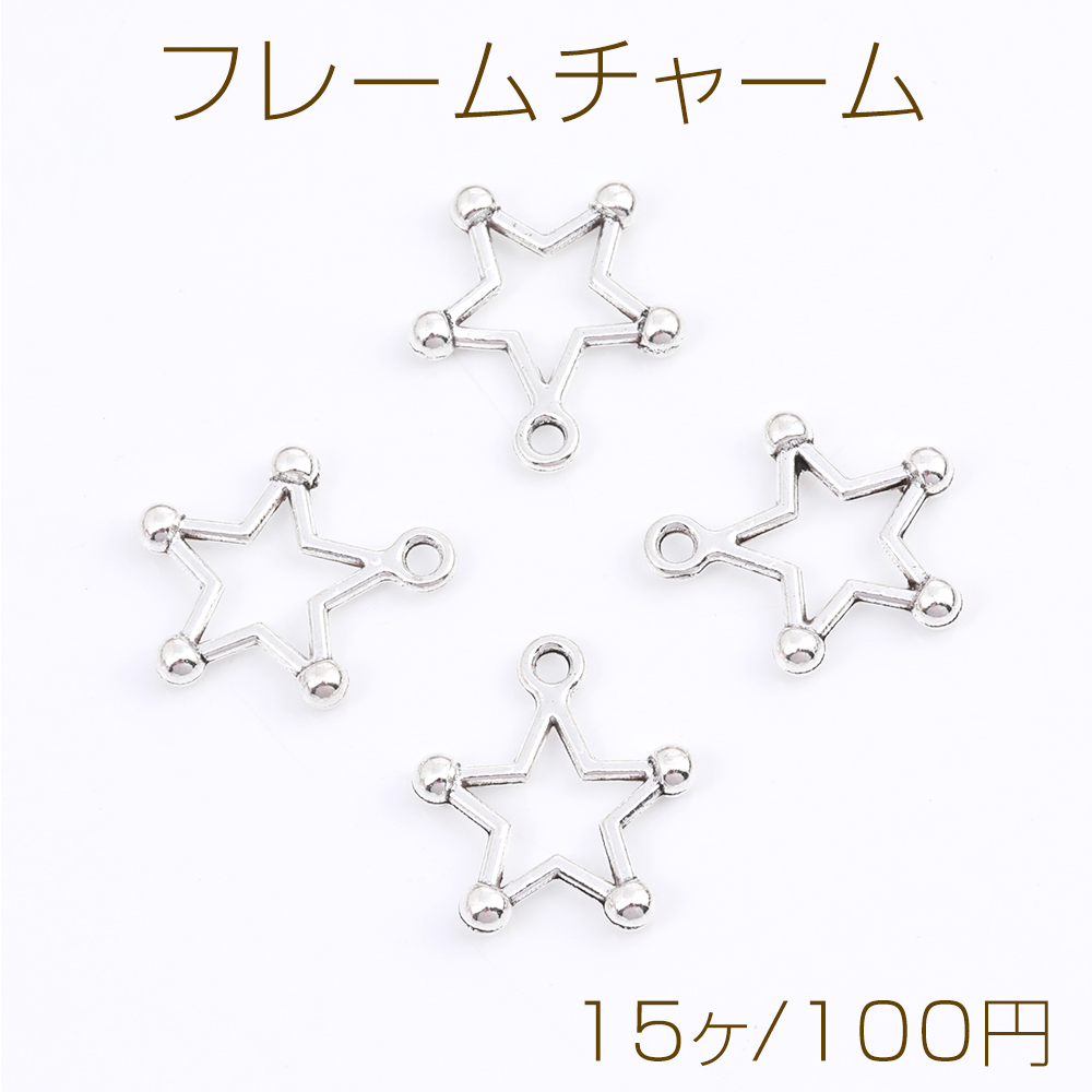 フレームチャーム メタルチャーム 星形 15.5×18mm アンティークシルバー(15ヶ)