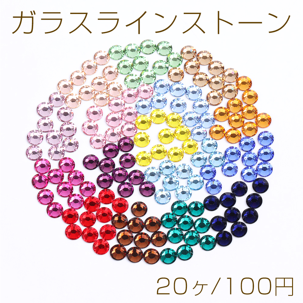 限定商品!高品質ガラスラインストーン ネイルパーツ 平ラインストーン ラウンド 4.6mm(20ヶ)