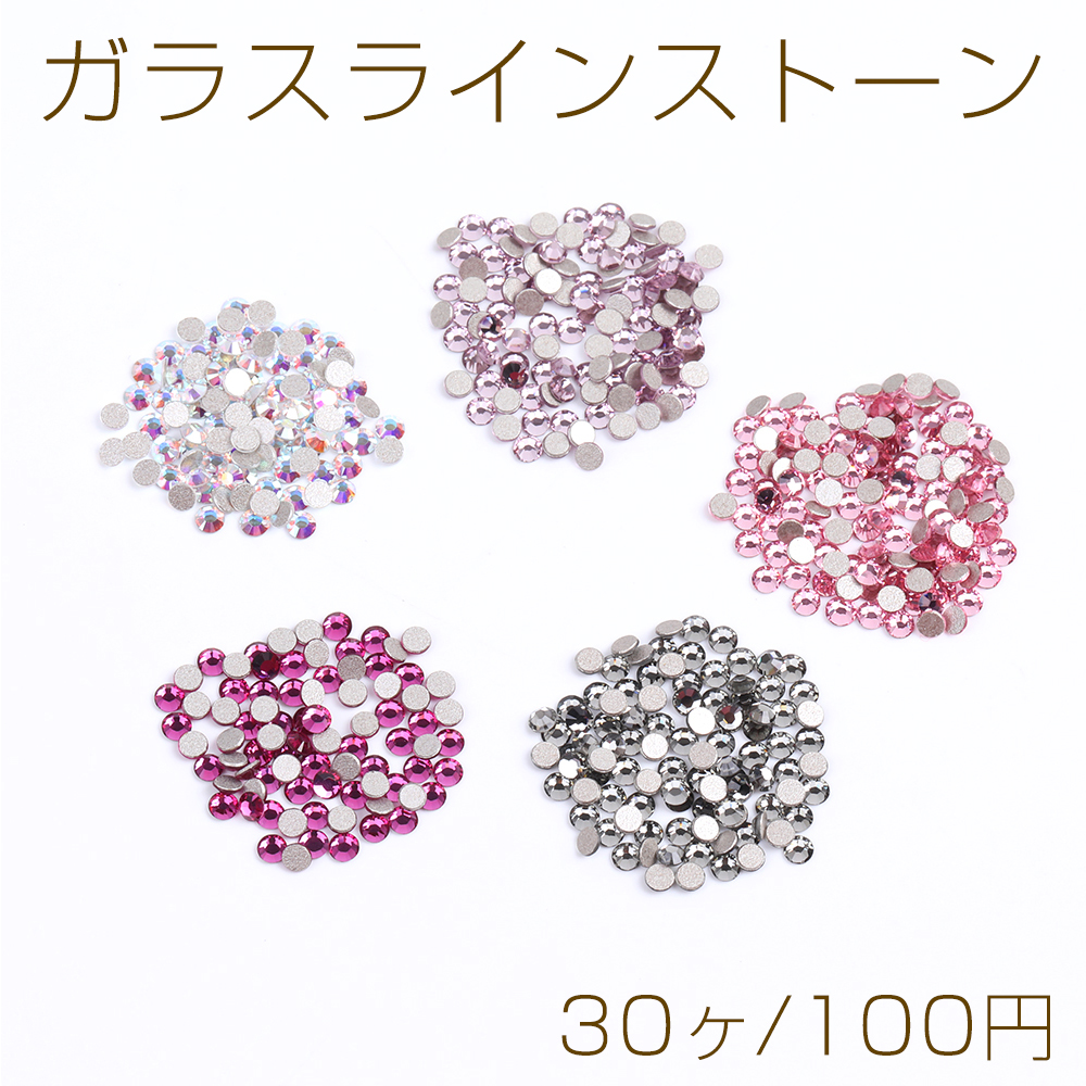 限定商品!高品質ガラスラインストーン ネイルパーツ 平ラインストーン ラウンド 2mm(30ヶ)