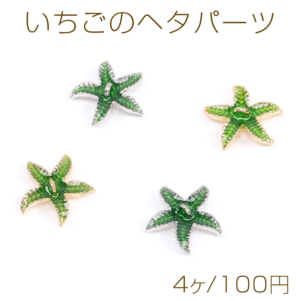 いちごのヘタパーツ フルーツのヘタパーツ エポ付き 貼付けいちごのへた部分パーツ いちごキャップ 16×17mm(4ヶ)