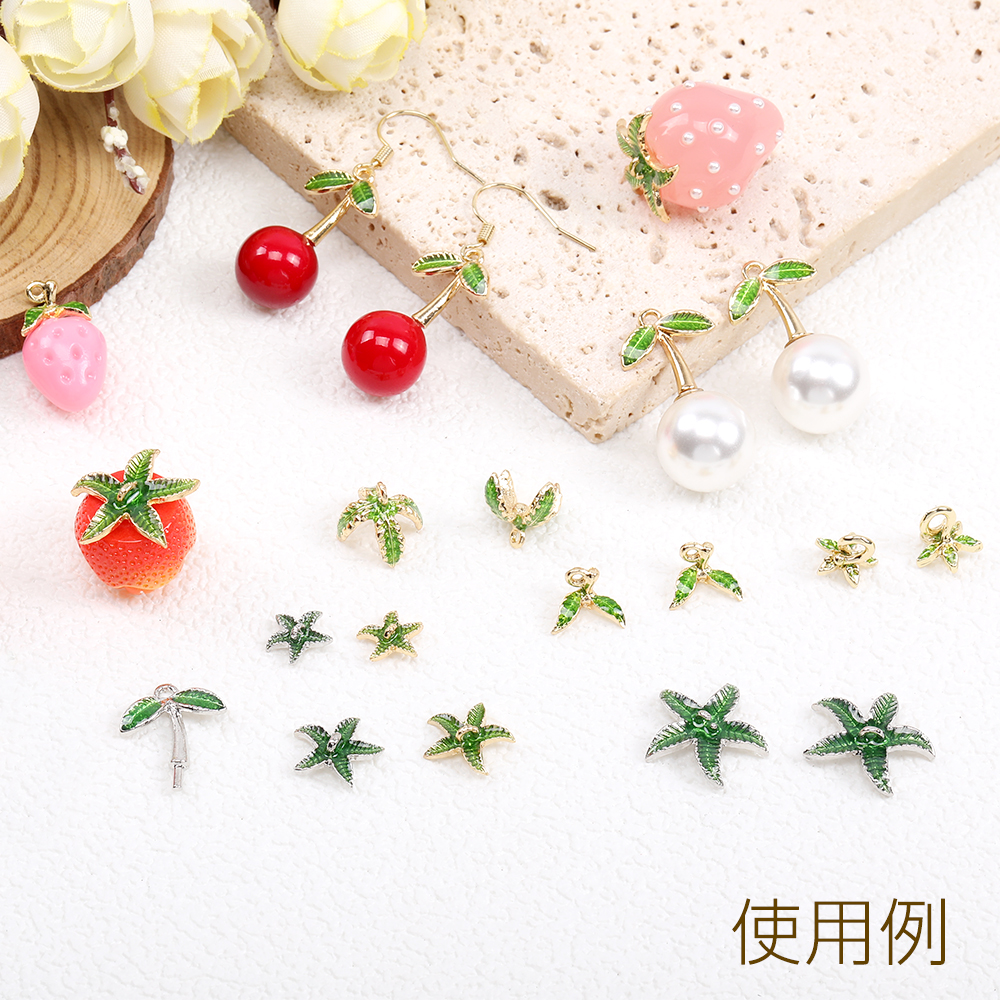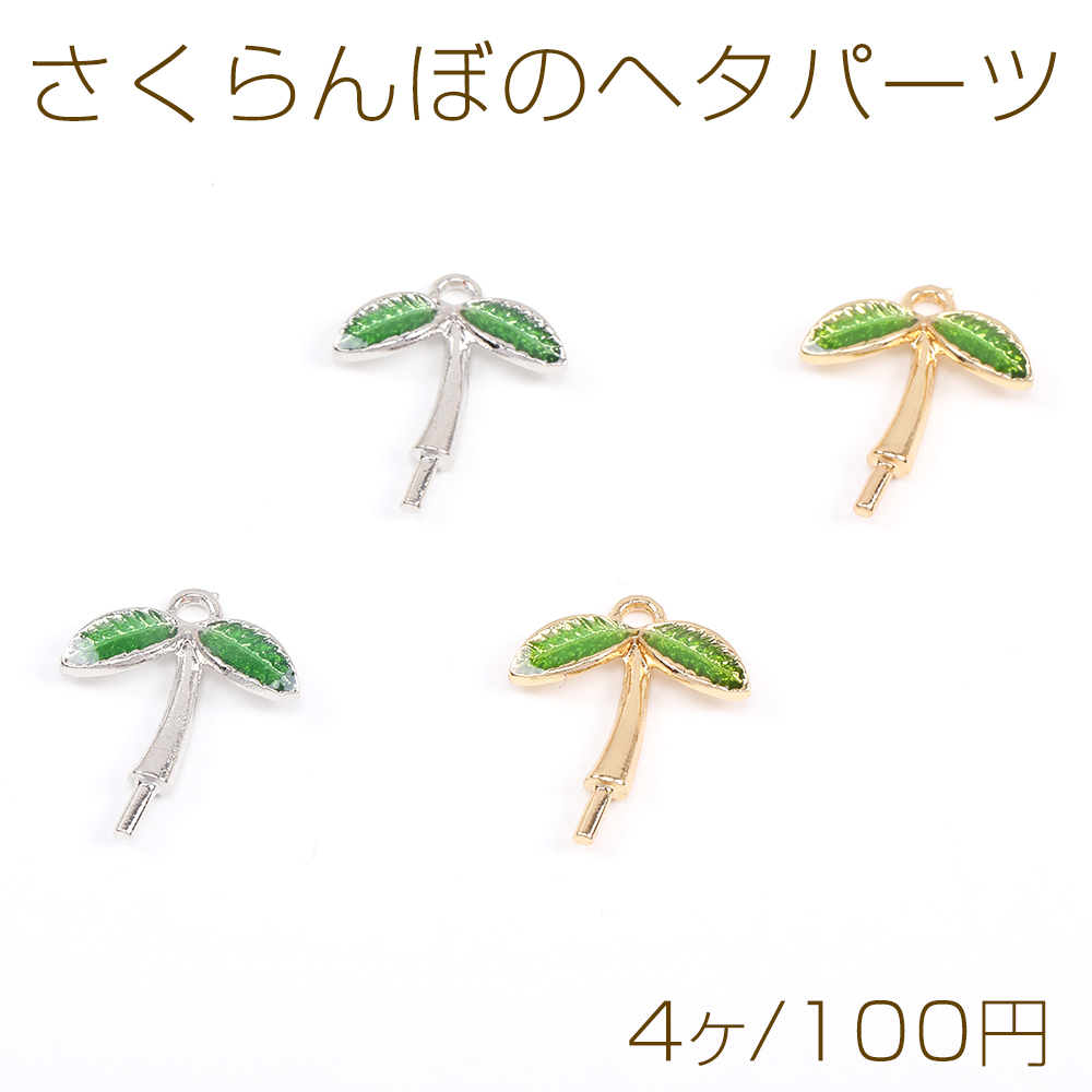 さくらんぼのヘタパーツ フルーツのヘタパーツ エポ付き 貼付けさくらんぼのへた部分パーツ さくらんぼキャップ 14.5×18mm(4ヶ)