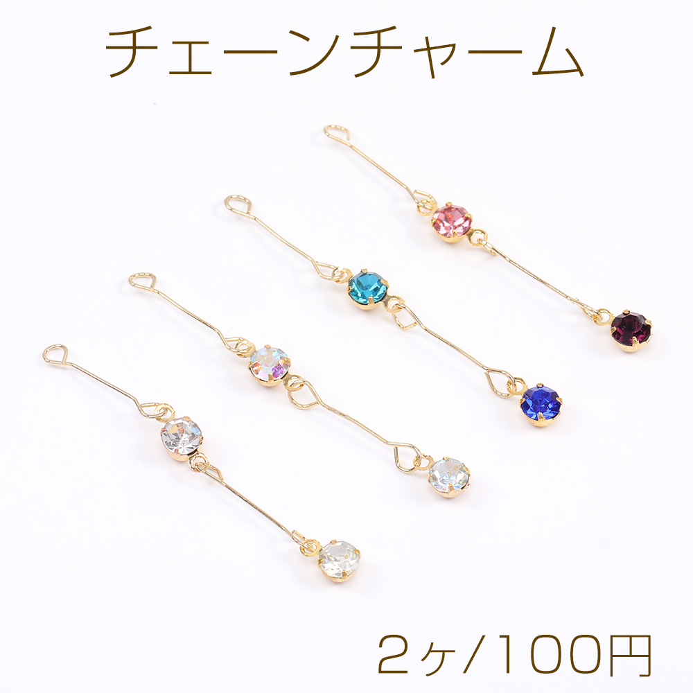 チェーンチャーム ラインストーンチャーム付き ゴールド(2ヶ)