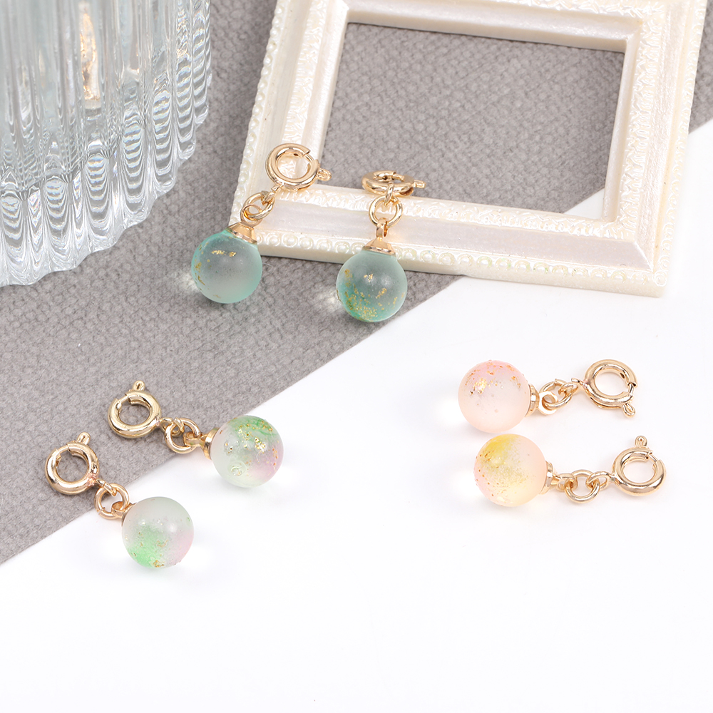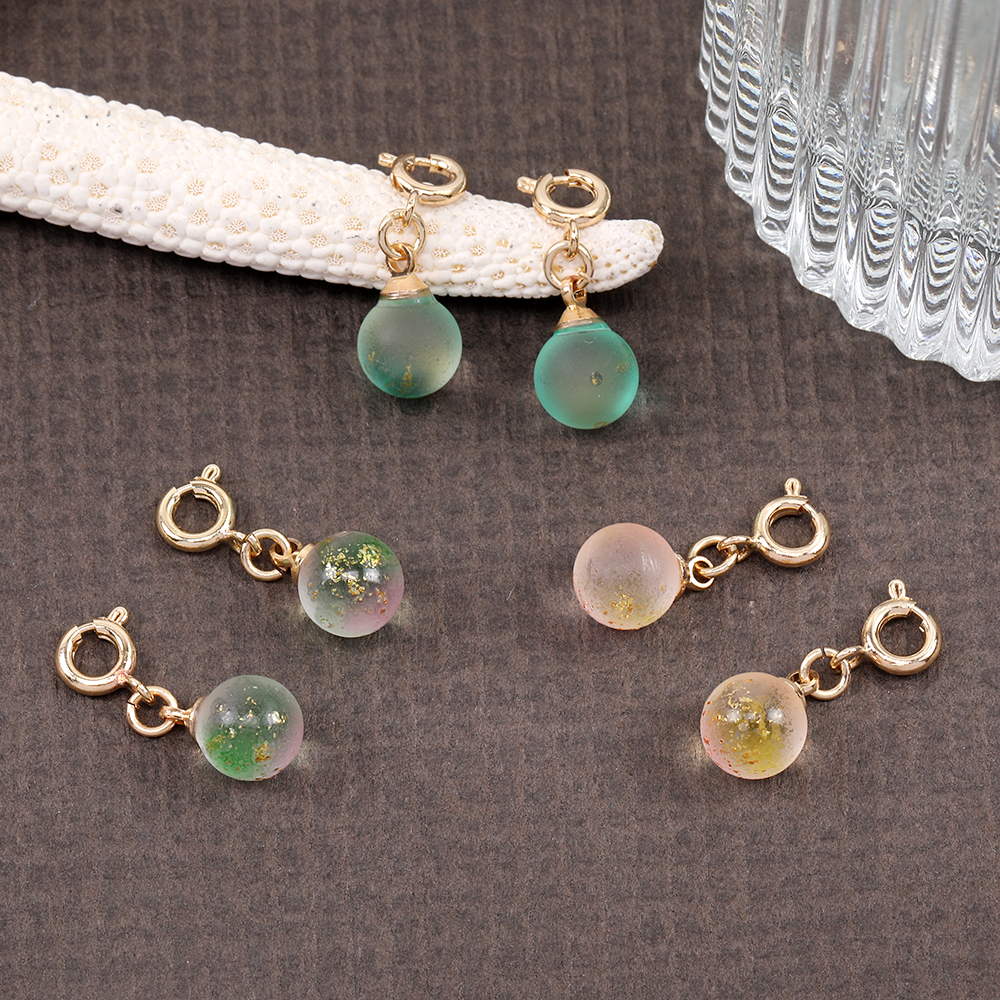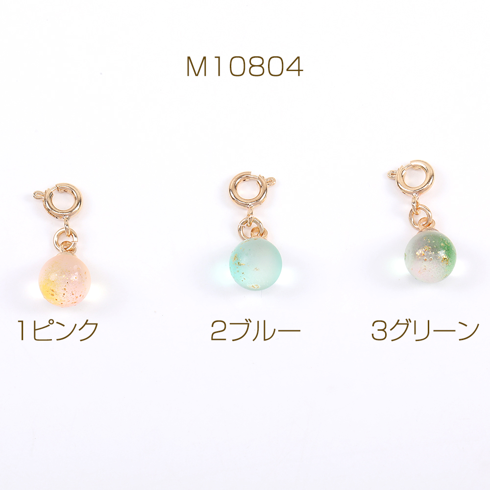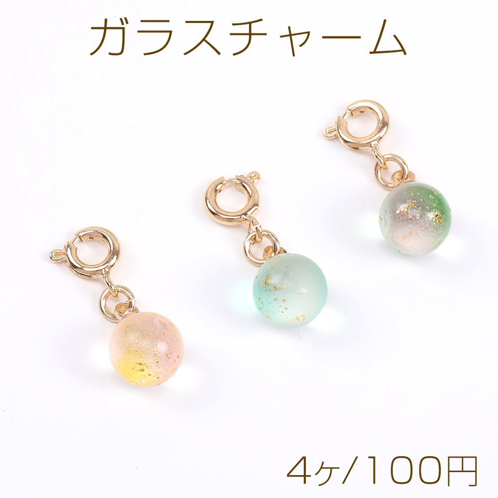 ガラスチャーム フロスト加工 金箔入り ボール グラデーションカラー 引き輪付き ゴールド(4ヶ)