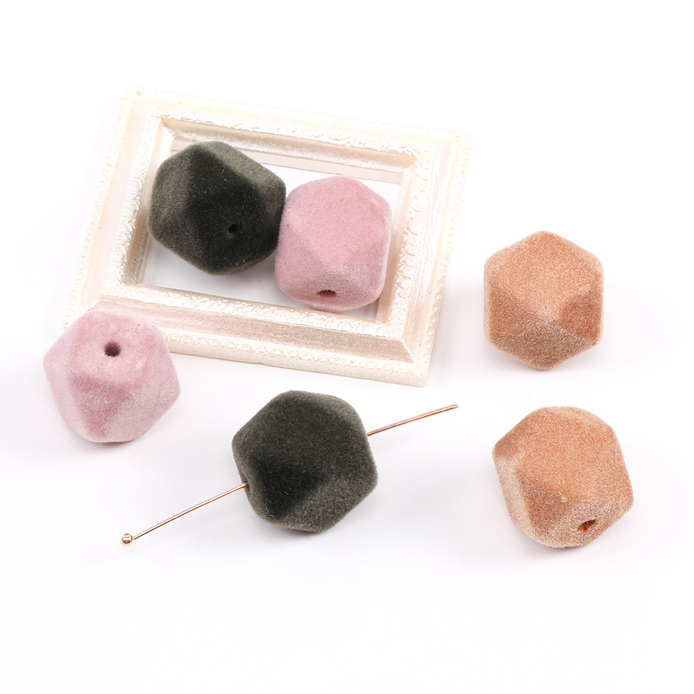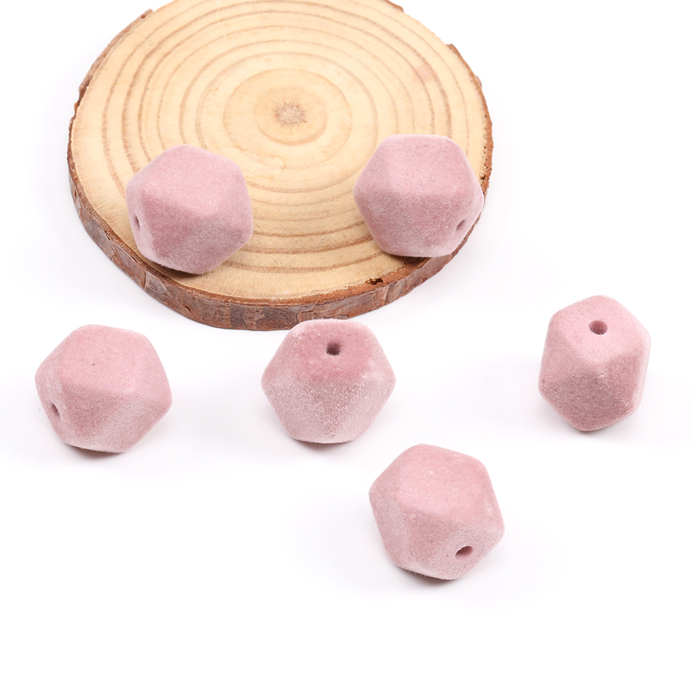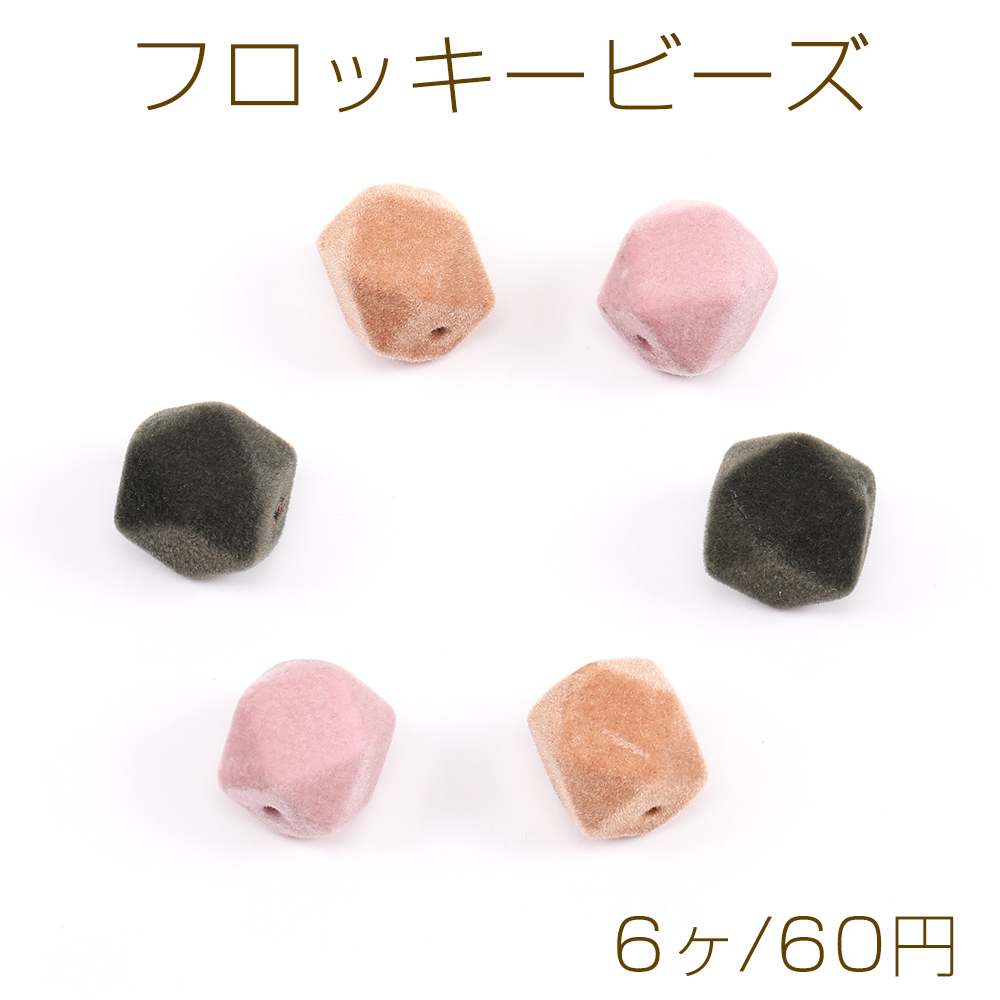 フロッキービーズ 六角カット 15×16mm ピンク(6ヶ)