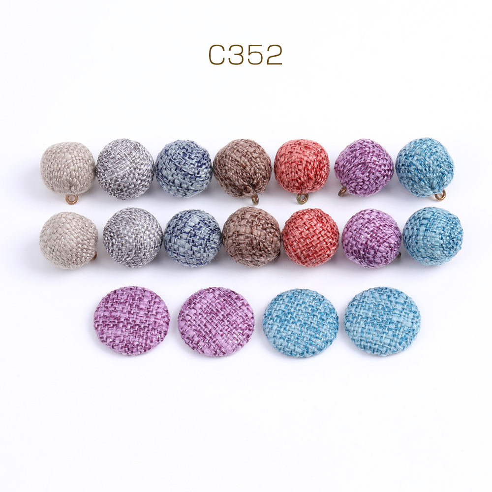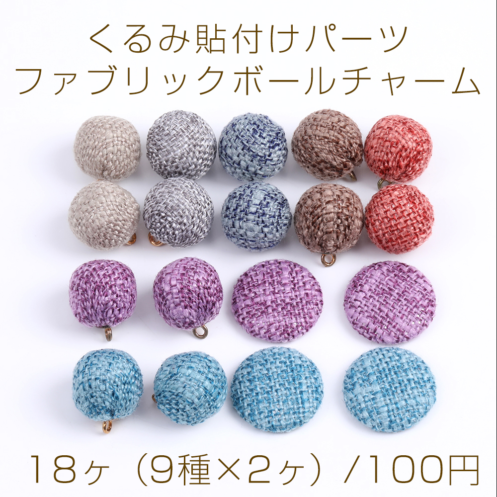 【限定商品】大特価!ファブリックボールチャーム&くるみ貼付けパーツ 15×17mm&20mm ミックスカラー(18ヶ)