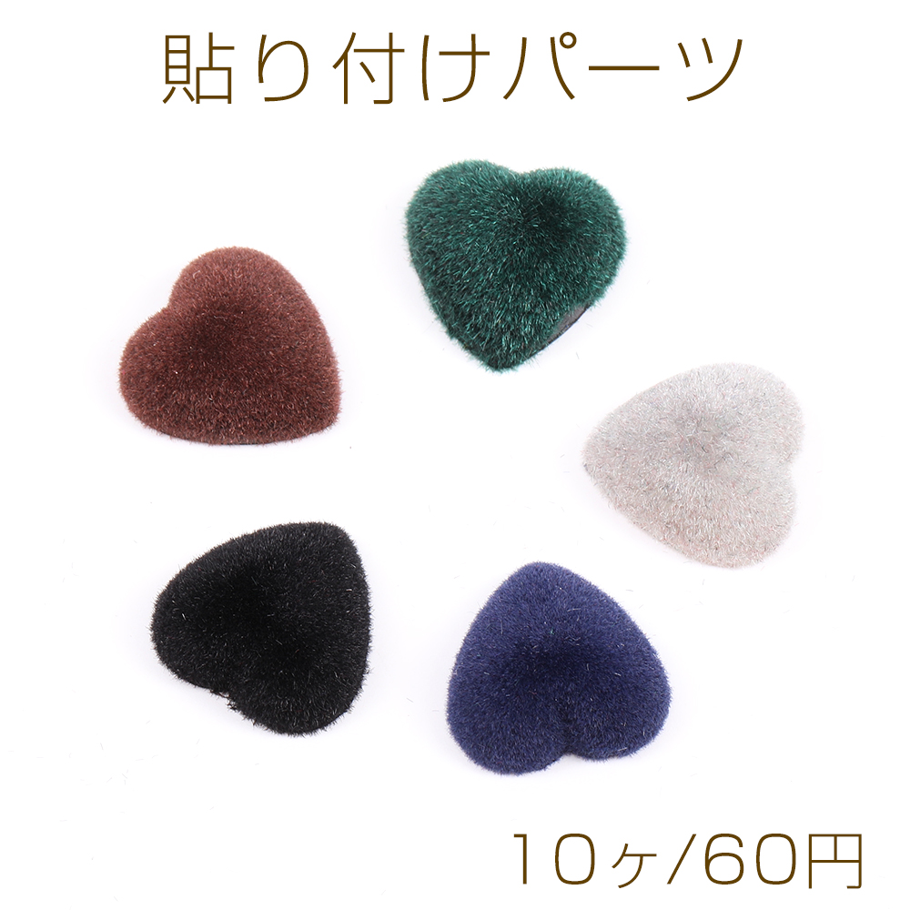 貼り付けパーツ アクリル貼付けパーツ アクリルカボション フロッキー付き ハート 15×15mm(10ヶ)
