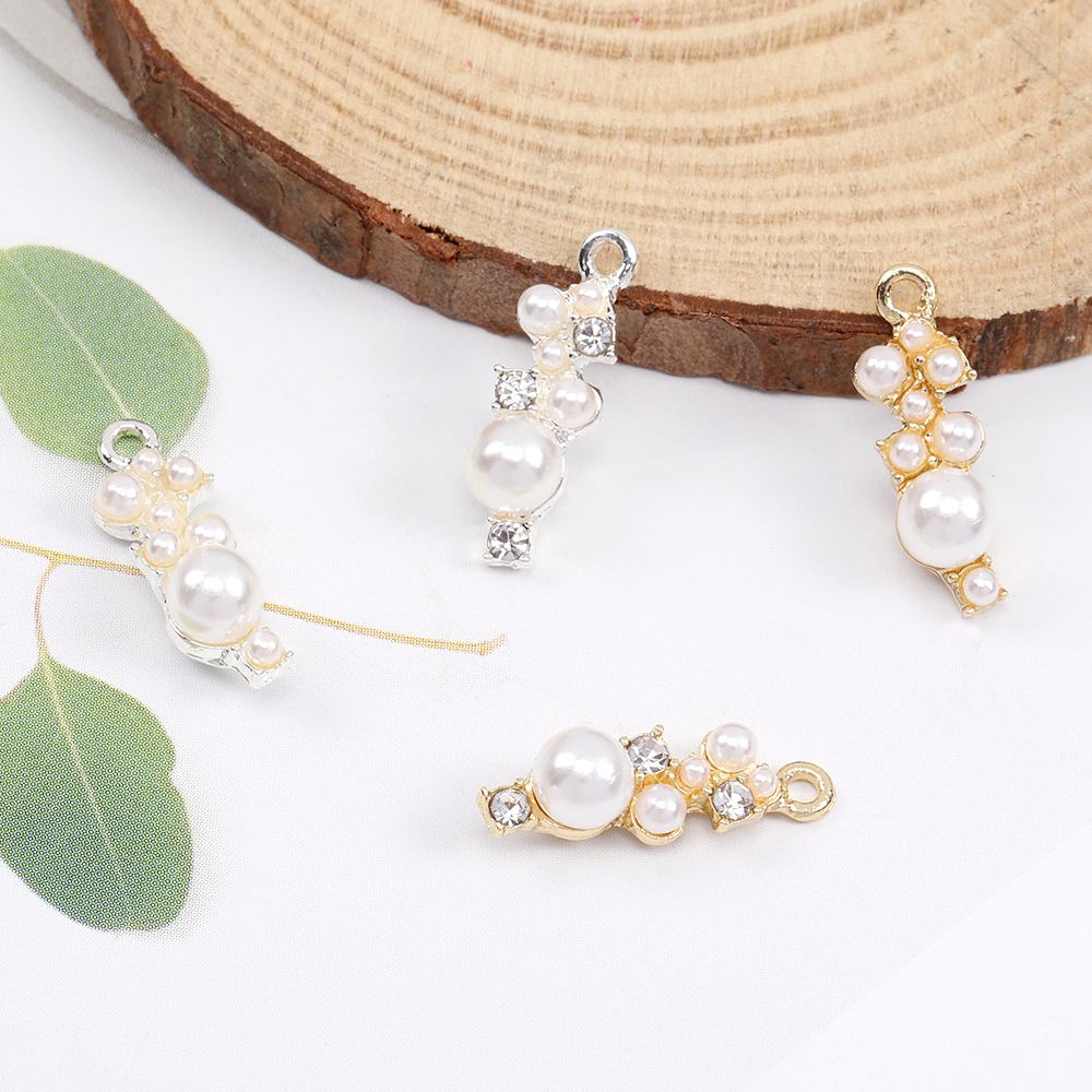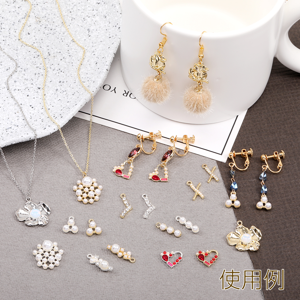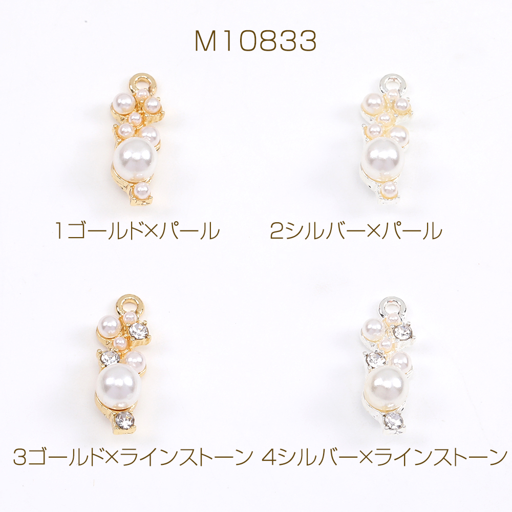 メタルチャーム パールチャーム ラインストーンチャーム 5.5×17.5mm(6ヶ)