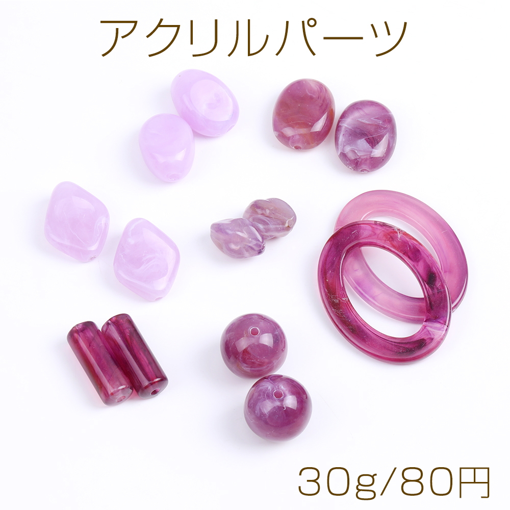 アクリルパーツ アクリルビーズ アクリルチャーム ミックス パープル(30g)