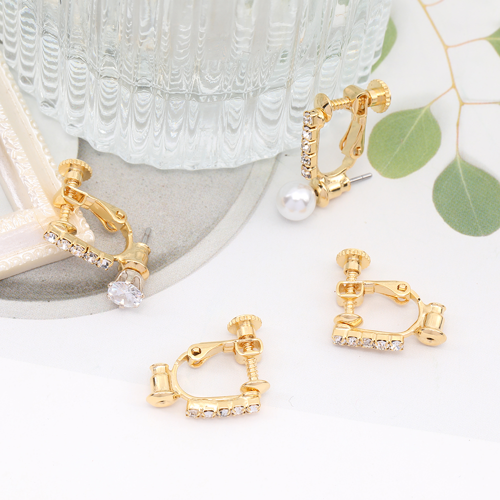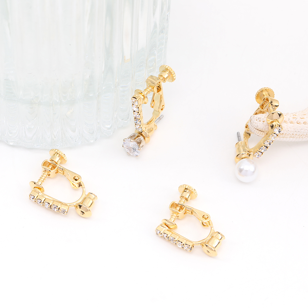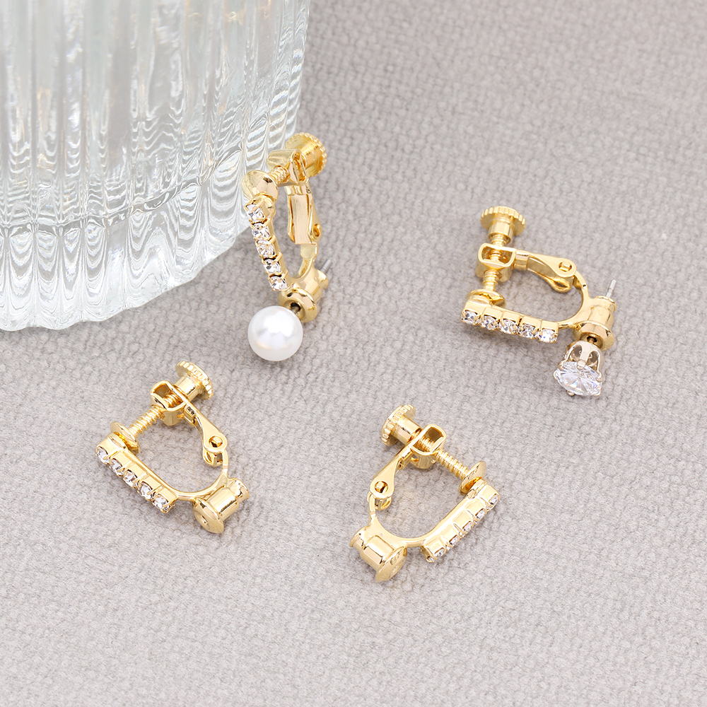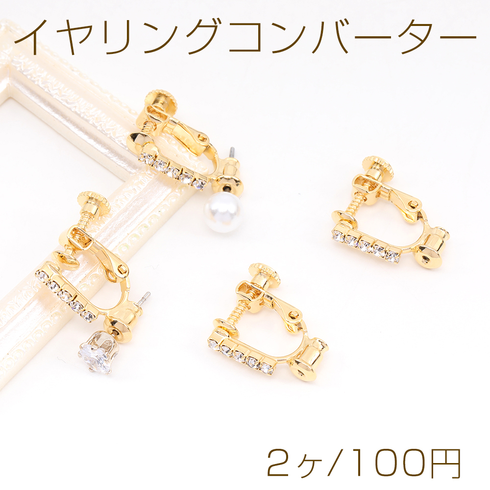 イヤリングコンバーター ラインストーン付き 14.5×16.5mm ゴールド(2ヶ)