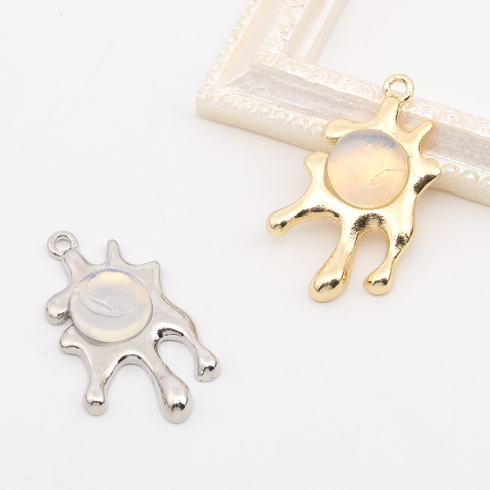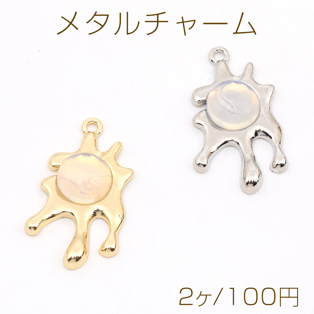 メタルチャーム 不規則チャーム ホワイトオパール付き 14×25mm(2ヶ)