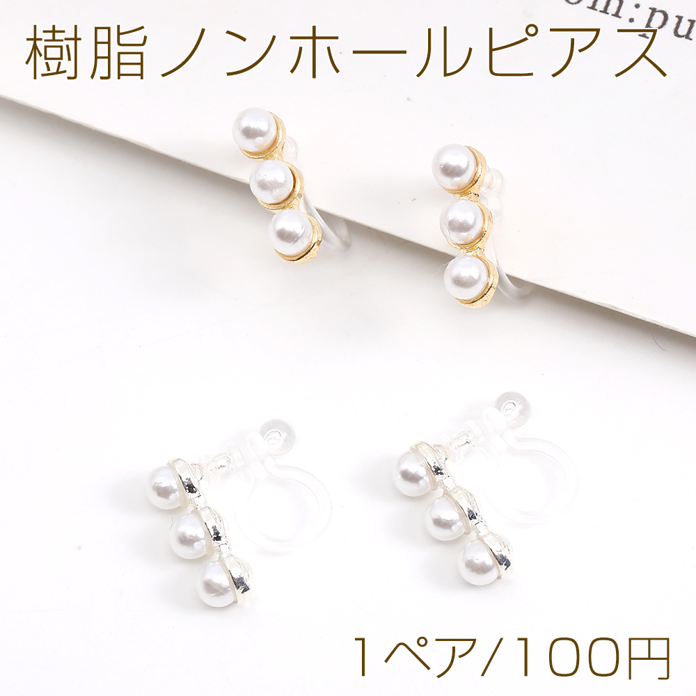 樹脂ノンホールピアス パール付き 4×13mm(1ペア)