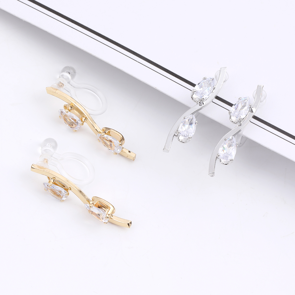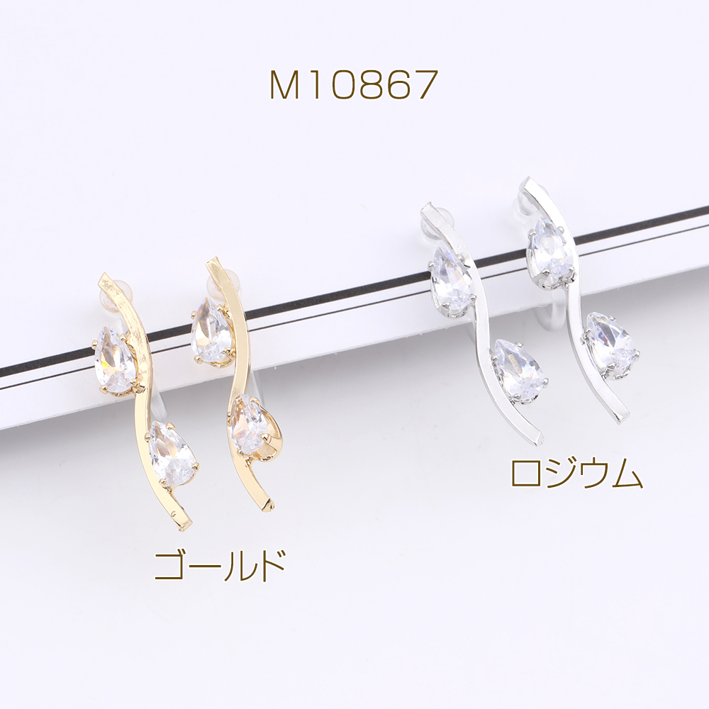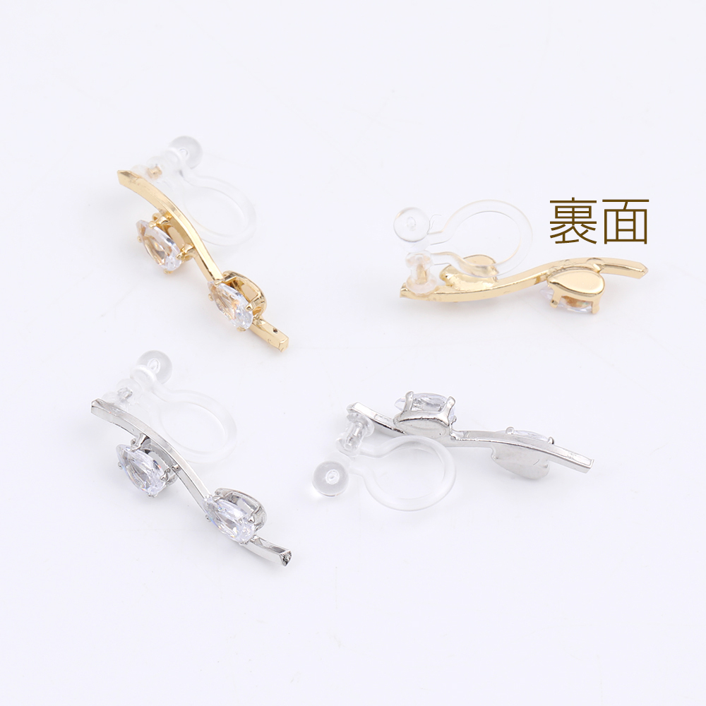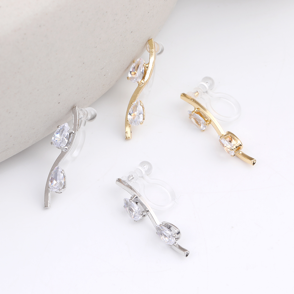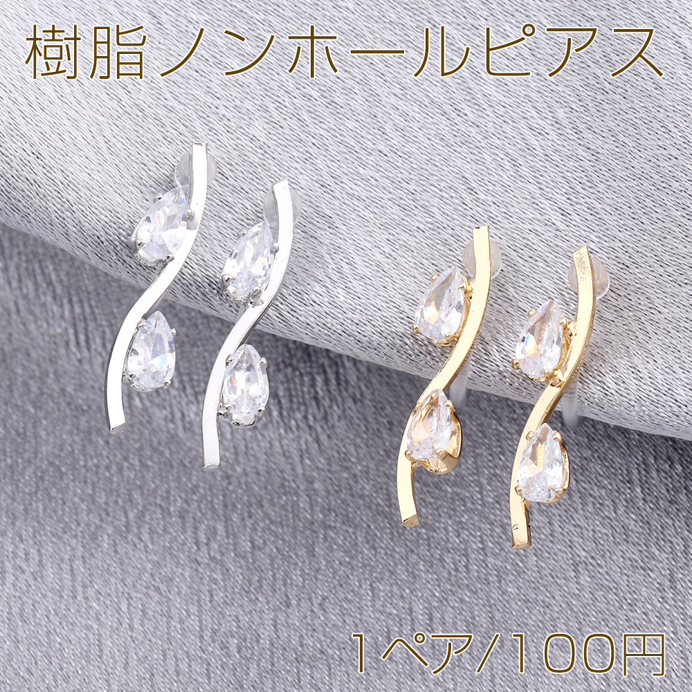 樹脂ノンホールピアス スティック S型 ラインストーン付き しずく型 4×20.5mm(1ペア)