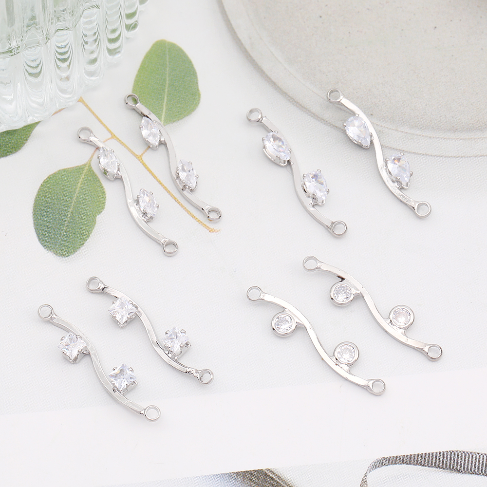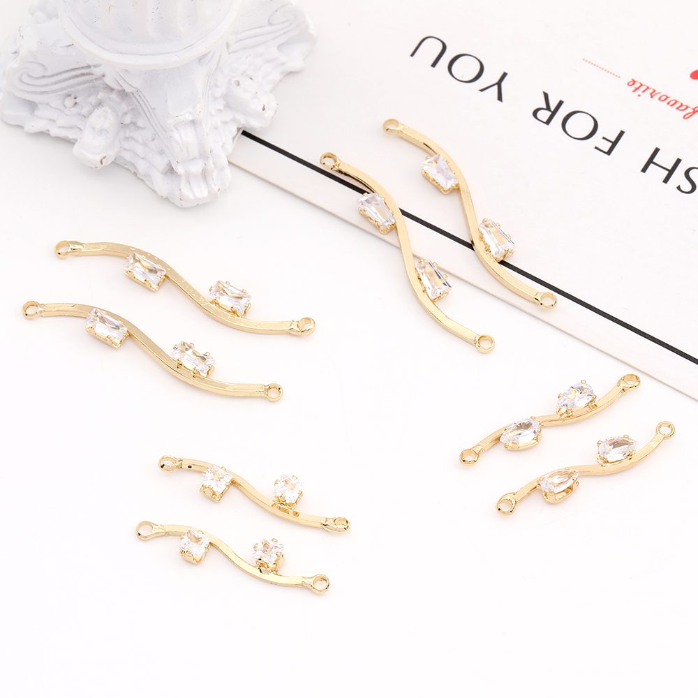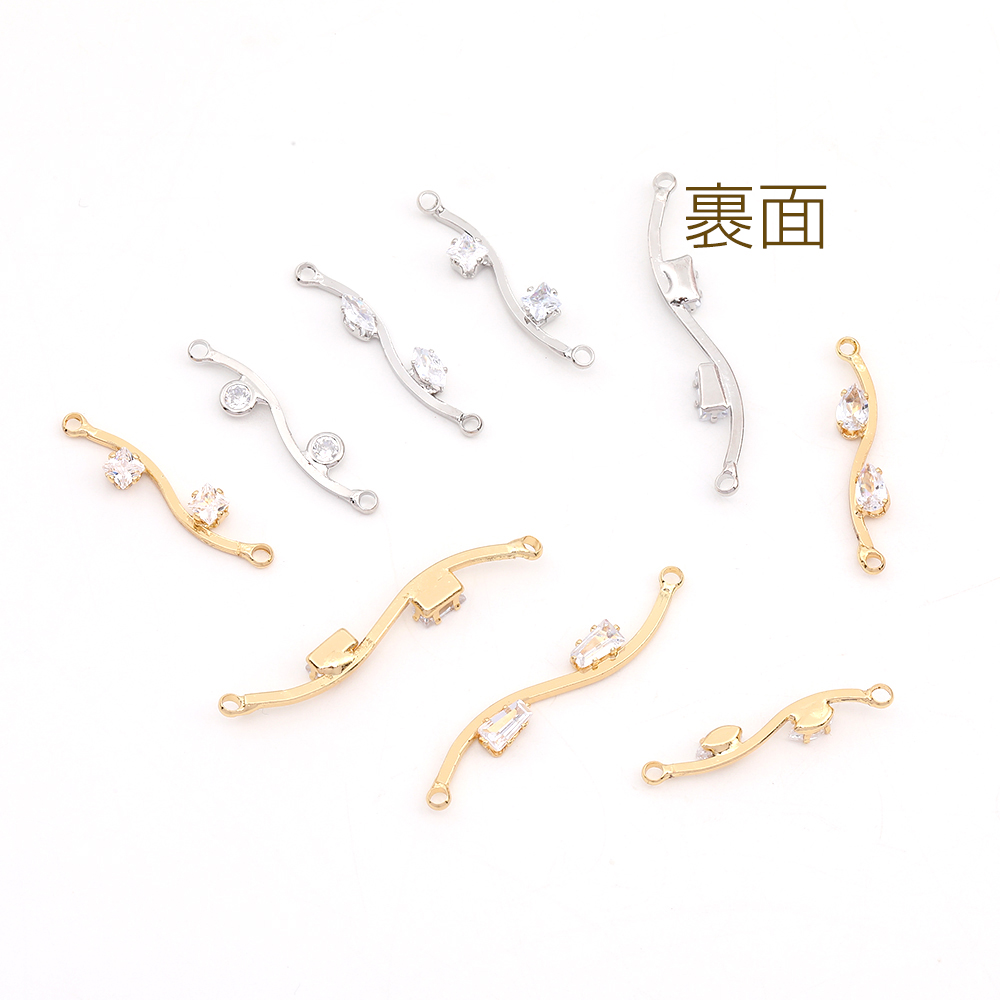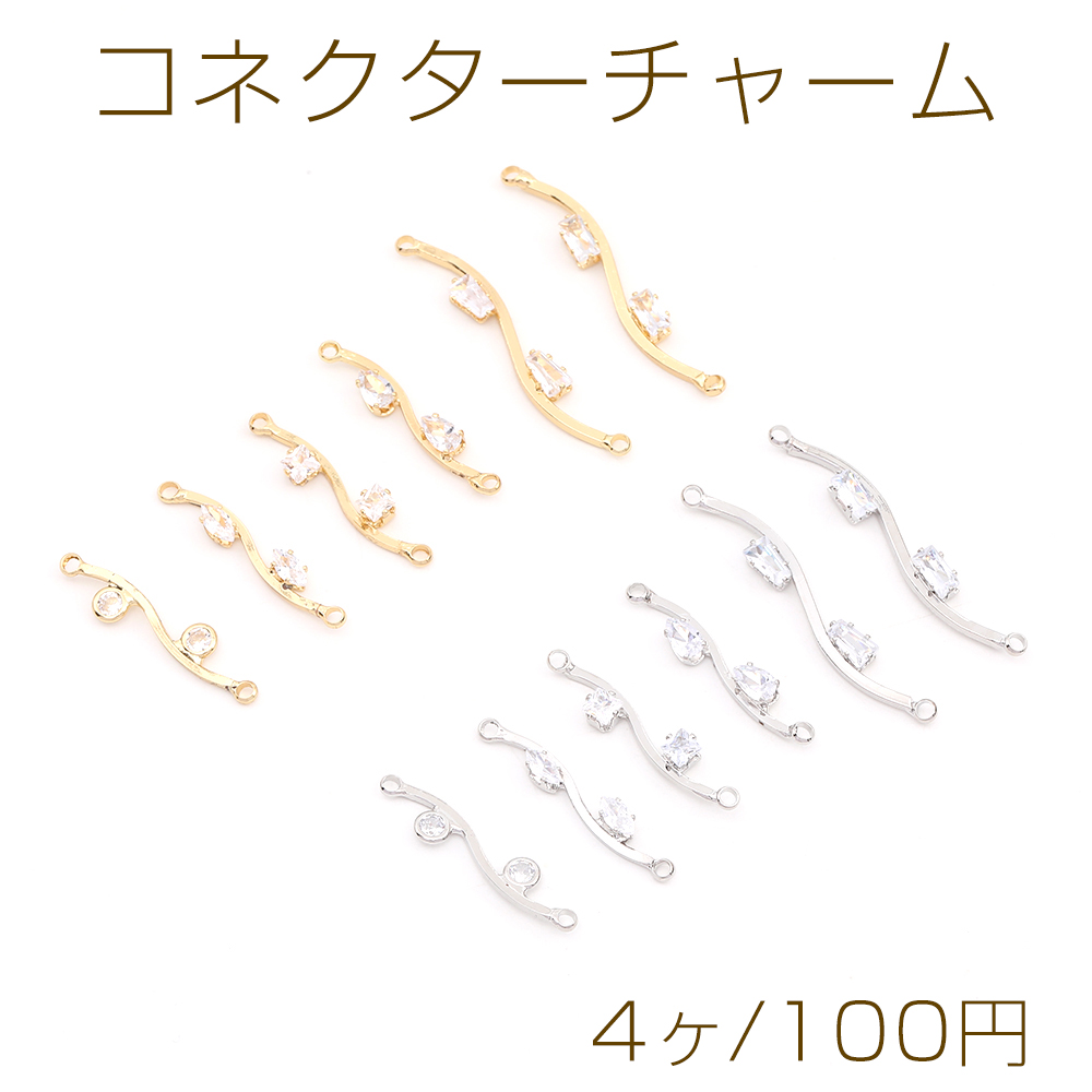 コネクターチャーム スティックチャーム S型 ラインストーン付き ラウンド ホースアイ スクエア型 しずく型 台形型 長方形型(4ヶ)