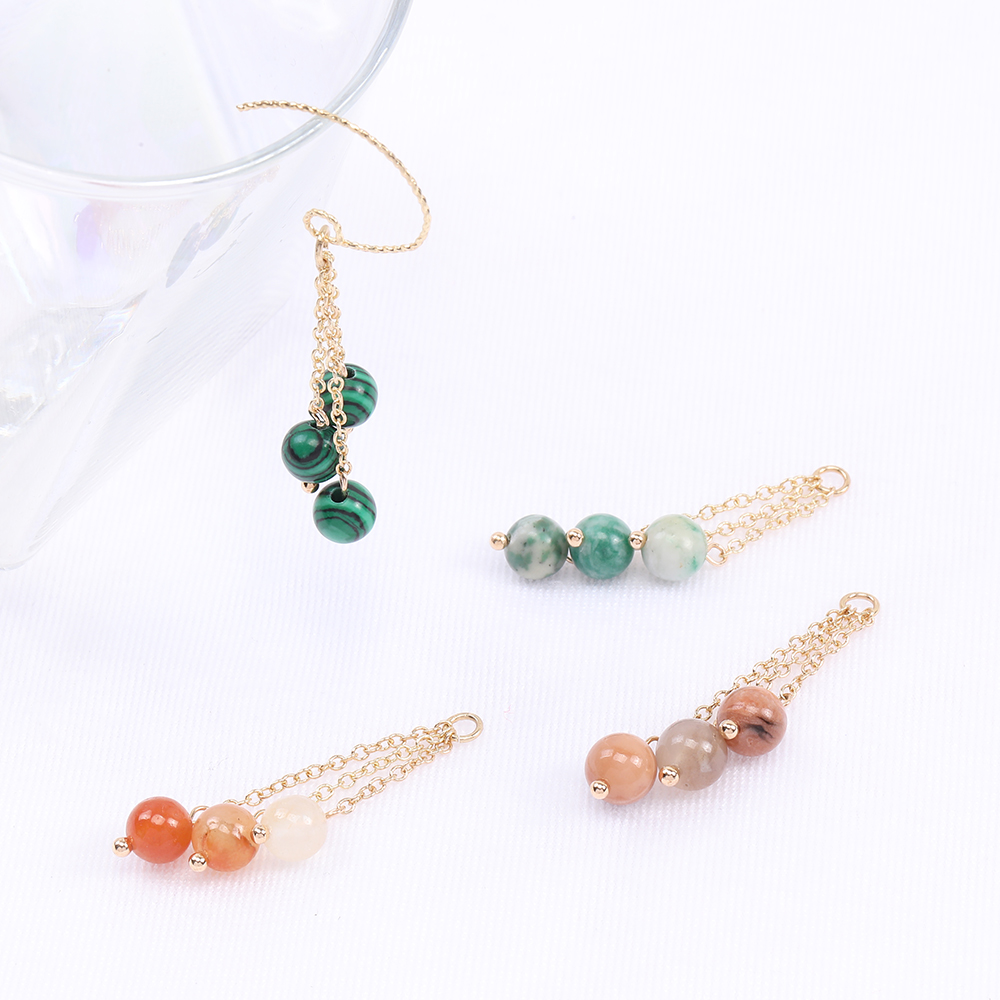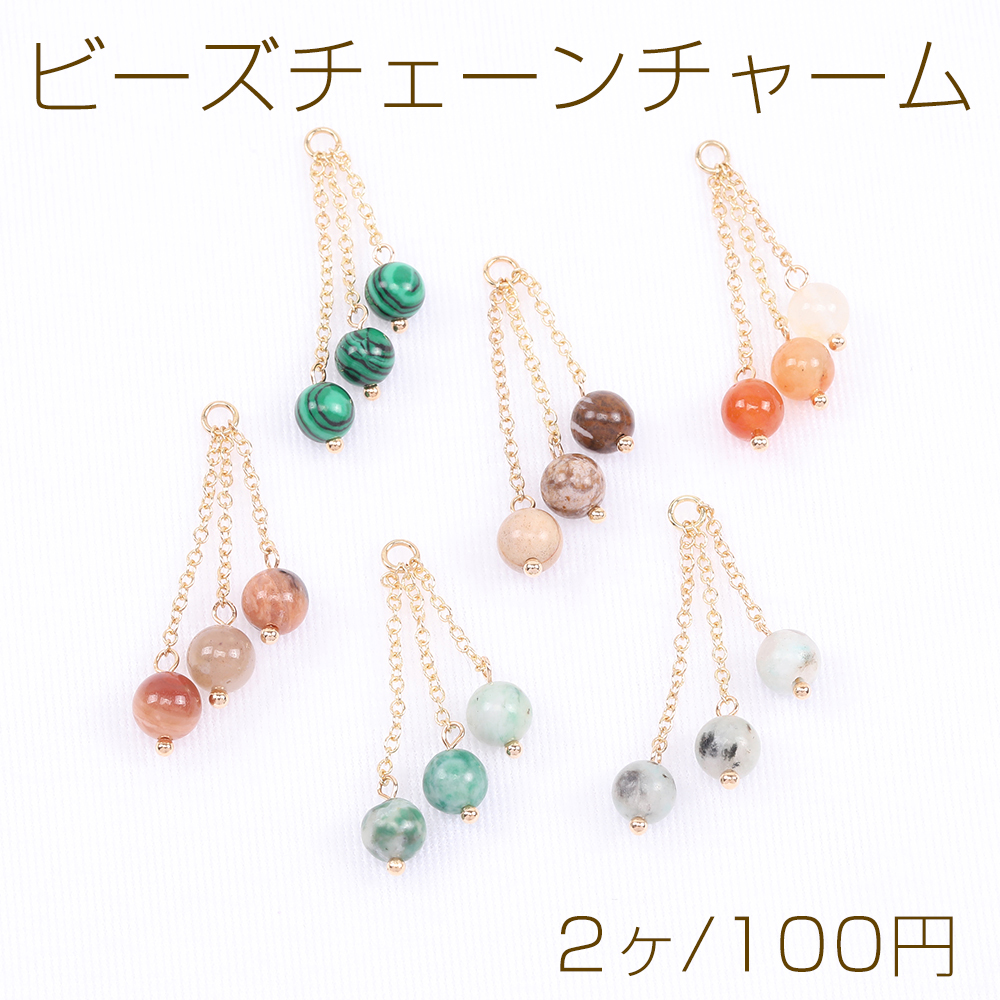 天然石ビーズチェーンチャーム 6×41mm(2ヶ)